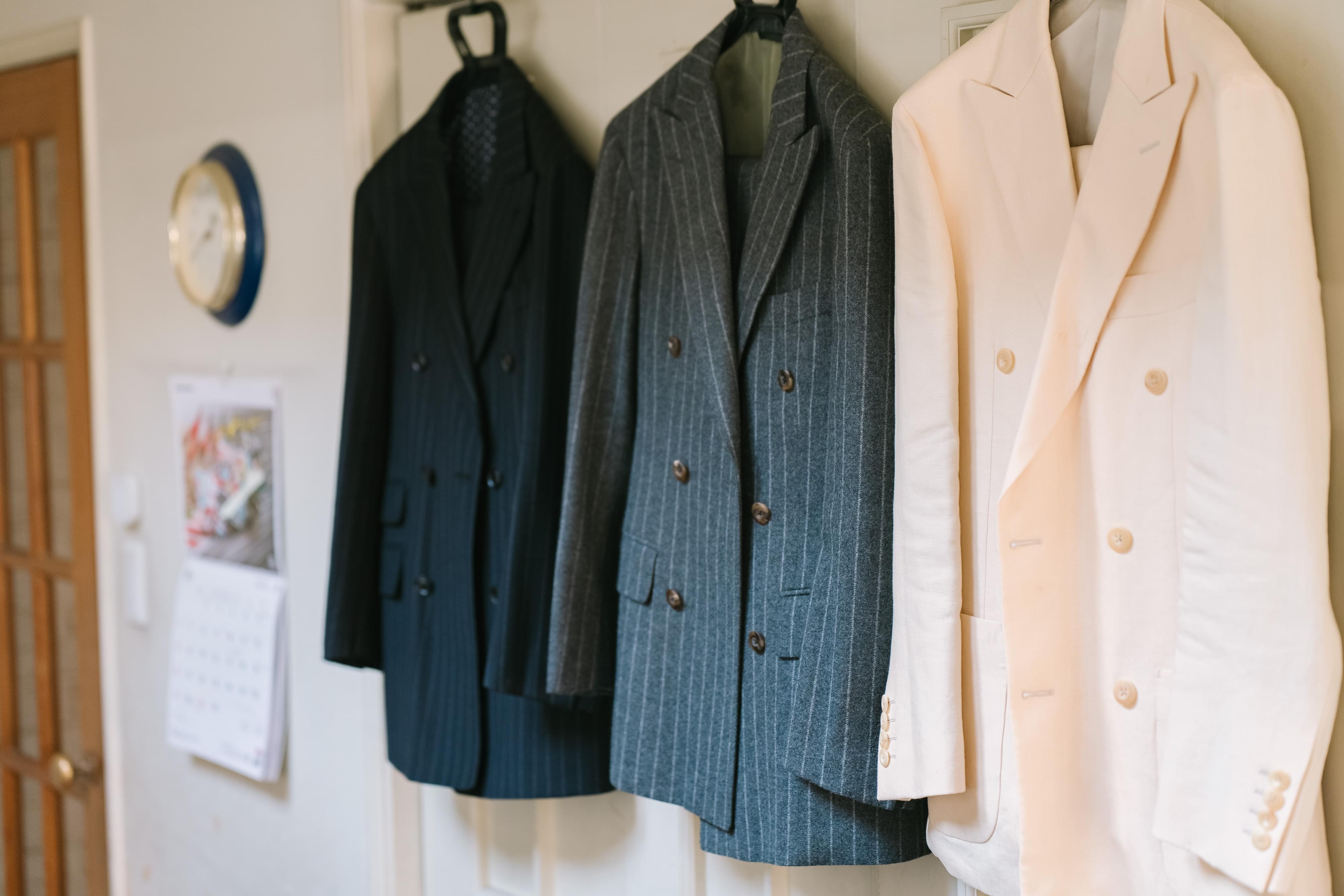 とても満足しています。仕事をいただいているから、おべっかを使っているわけではありませんよ。本音です。たとえばこのダブルスーツは 20 年以上前に作ったものなんですが、一番着ているんじゃないかしら。今のように定期的にイラストのお仕事をやらせていただく以前、ある雑誌の企画で麻布テーラーさんを取材したんです。そのときに作ったのがこれ。英国のサヴィル・ロウでスーツを仕立てたこともありますが、あれよりもこっちのほうが気に入っているかも。