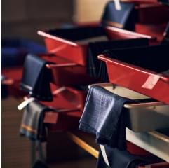 オーダースーツブランドはいまや数えきれないほど存在しますが、自社工場で服作りを行っているのはごくわずか。そのひとつが麻布テーラーで、現在は滋賀県と広島県の2カ所に拠点を構えています。今回紹介する滋賀工場は創設1969年。その歴史は半世紀以上に及びます。最大の特徴は、生産量の99%がオーダー服であるという点。同じ仕様の服をまとめて作る既製服工場とは違い、仕立てる洋服の一点一点がすべて異なるのです。それらをミスなく、かつ品質にもこだわって仕立て上げる秘訣は何か? それは、手間暇を惜しまない職人魂、そして約150人の技術者たちが一丸となって一着を仕立てるチーム力にあります。次ページから具体的に見ていきましょう。