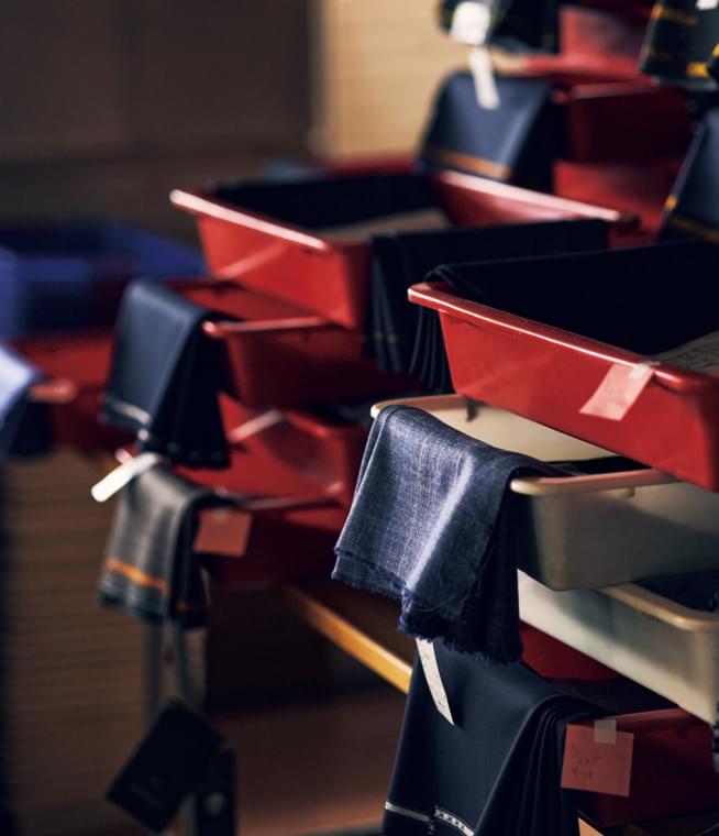 大量生産ではなく、一着一着を丁寧に仕立てる自社工場での物作り。そして、お客さまの感性に応えるため、海外の一流ブランドとの別注や圧倒的なコストパフォーマンスを感じるオリジナル生地の開発――。