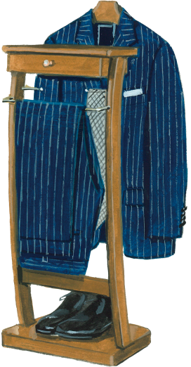 下着、ワイシャツ、ベルト、そしてスーツに靴も、ベストの一張羅だ。