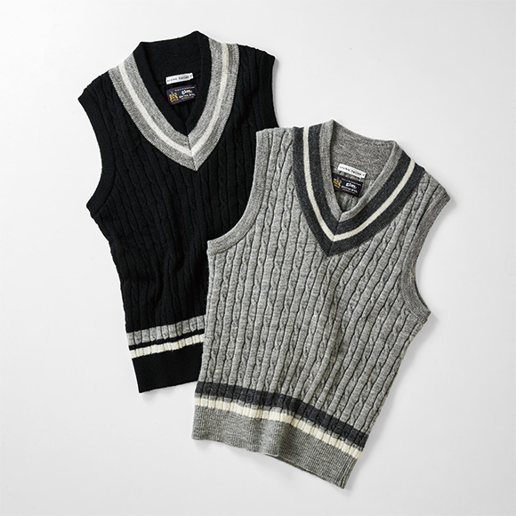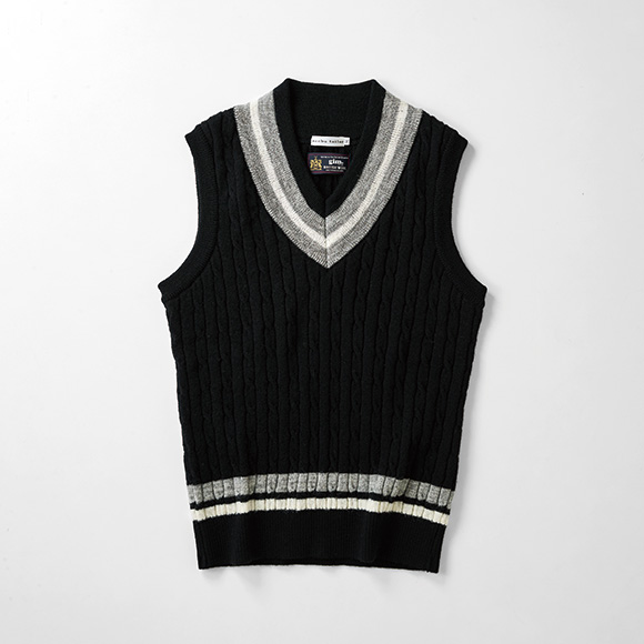 もともとはクリケット競技のユニフォームとして着られていたことで「クリケットセーター」と呼ばれていましたが、アメリカのテニスプレイヤー、ウィリアム・チルデン選手が好んで着たことで「チルデンセーター」と呼ばれるようになりました。麻布テーラーは、トラッド感とスポーティさを併せ持つこのニットを、ビジネスシーンにも馴染む、黒と白、グレーの無彩色の濃淡で構成されたモノトーンに落とし込みました。 ¥16,500 全2色(ブラック / グレー)