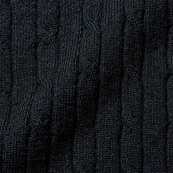 英国羊毛公社の登録商標であるステッキマーク付きの本物のブリティッシュウールを使用し、10Gで編み立てました。ブリティッシュウールは、熱や寒さから防護する機能が備わっており、耐久性に優れ、丈夫で長持ちし、しみや汚れなどにも強い特徴があります。弾力性と伸縮性に優れ、英国羊毛でつくられた製品は長く着ることができ、しわになりにくく、圧縮されてもすぐに形が戻る利点があります。