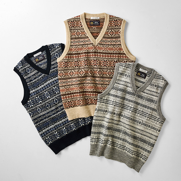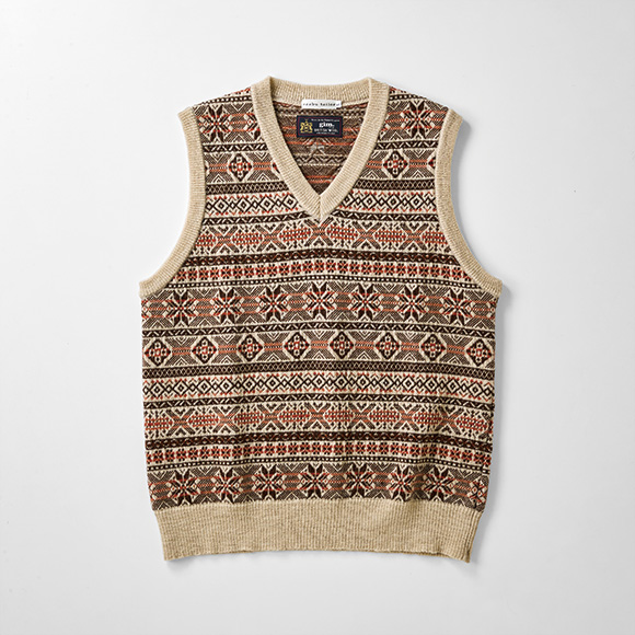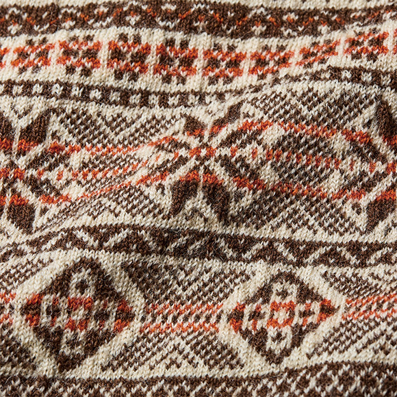 イギリスで400年以上編み続けられている伝統的な古典柄をフェアアイルと言われています。カラフルな色使いと、様々な形をした幾何学模様柄を麻布テーラーがテーラースタイルにマッチする、ネイビー・グレー・ブラウンの3色のトーオントーン配色で完全別注しました。英国の伝統的なフェアアイル柄を多色の糸を日本国内で紡績・編み立てることにより、英国羊毛らしい色のきれいさに富んだニットに仕上がりました。 ¥15,400 全3色(ネイビー / ブラウン/ ライトグレー)