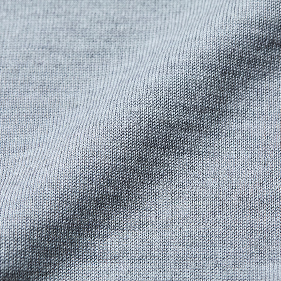ニットに使用している糸は、カシミヤと同等の細さと性質を誇る16.5ミクロンのメリノウールを使用しています。16.5ミクロンという細さはニット用ウールの等級でウルトラスーパーファインウールと呼ばれています。特定の品種、または部位の毛ではなく、オーストラリアで採取されたメリノウールの中から適合するものを選別し、この名称を与えています。
