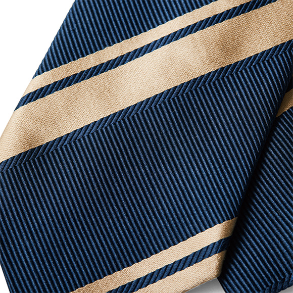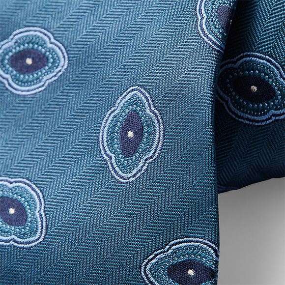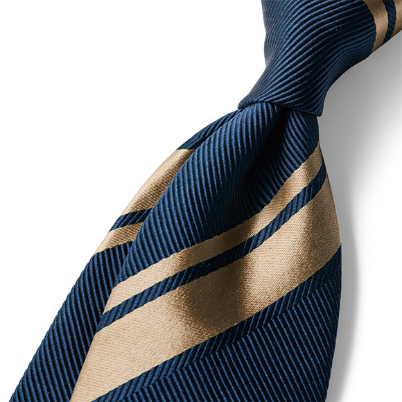ゆっくり丁寧に織上げた、高品質で目つけのしっかりした重厚感のあるモガドール素材は、ネクタイの結び目の下に入ったくぼみのディンプル部分の生地浮きが生じません。キュッと締め上げた時に見せる立体的で美しいディンプルは、スーツのVゾーンを華やかに演出します。