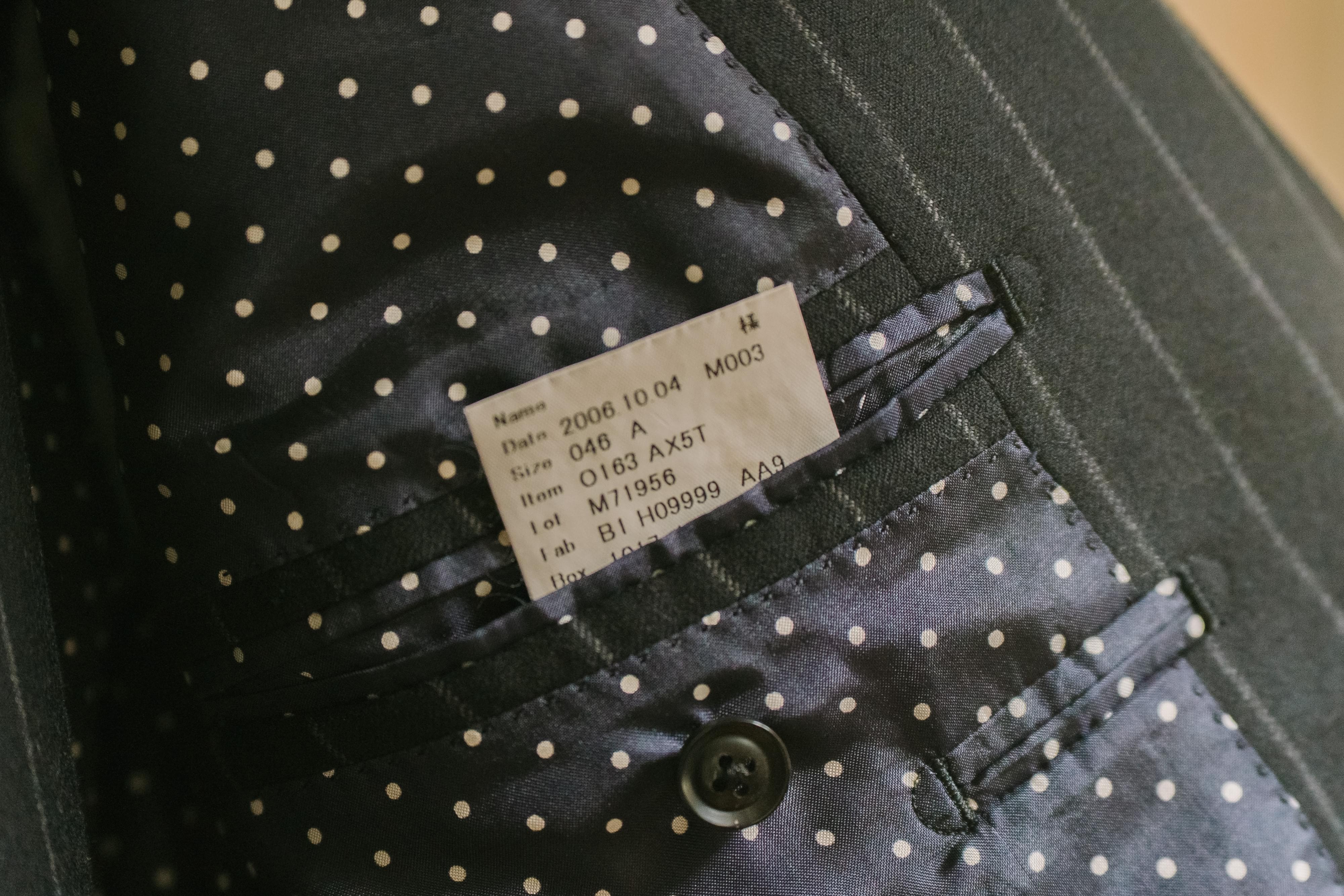 今はないブリティッシュモデルという型紙で作られたものですね。生地はイタリア製。20 年前に作られたものなのに、芯材をほとんど入れずに仕立てたんですね。