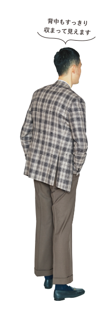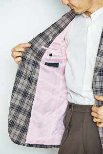 「まずここまで細かく選べることに驚きました。今まで体験してきたものとはまったく別物。選択肢の多さが段違いです。素材も柄も異なるジャケパンを作るのは初。生地をじっくり吟味できたおかげでバランスよく仕上がったと思います。」