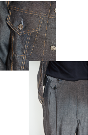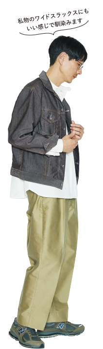 今回増井さんがオーダーに挑戦してくれたのは3rdタイプのトラッカージャケットのセットアップ。“ドレスなアメカジ”の新境地だ。