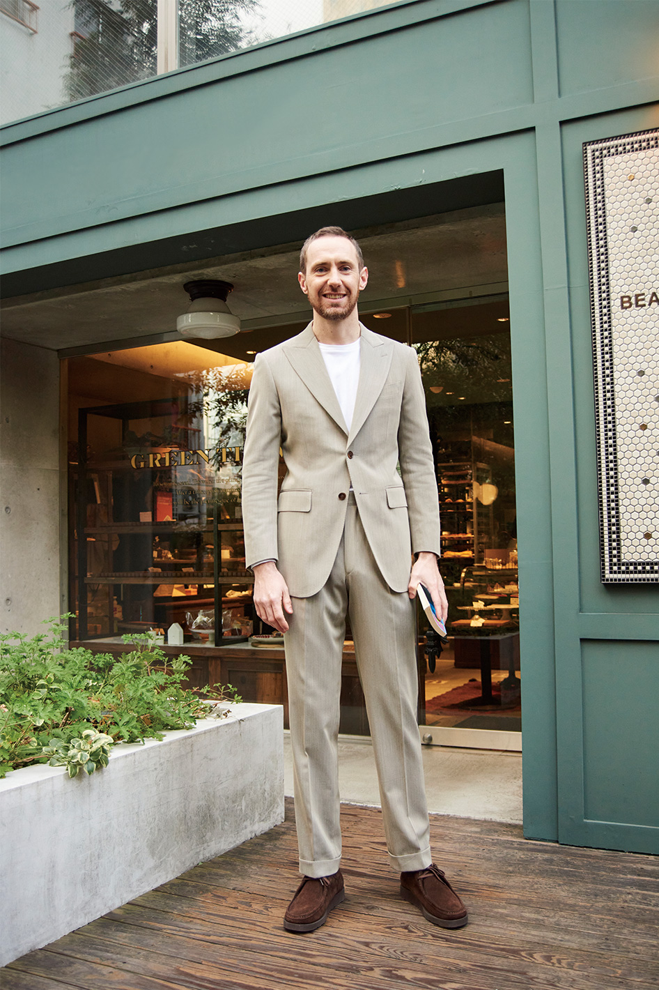 「とにかく生地の種類が圧倒的。ジャケットはモヘア混のリネン素材。パンツはシワになりにくいウールを選びました」