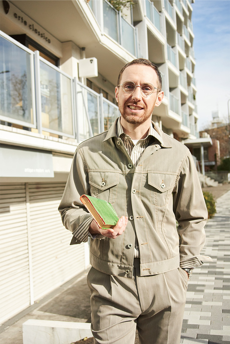 トラッカージャケット ¥110,000〈LORO PIANA /GREEN NYL M22543〉※取扱店舗・期間/ &B 銀座 six 店 3/11 ~ 5/5 ・パンツ ¥39,600〈ジャケットと共地〉・シャツ ¥16,500〈AM12762〉(すべてオーダー価格) その他スタイリスト私物