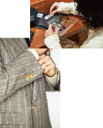 「この色の水牛ボタンがちゃんと生地に馴染んでくれるか少し不安だったのですが、想像以上にしっくりきた。袖をキッスボタンにしたのも正解でした」