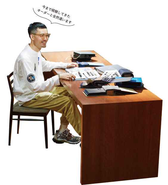 服飾資材を取り扱う商社に勤務する綾さんは、ディテールの知識とこだわりが人一倍。自分のスタイルを明確にオーダーしてくれた。