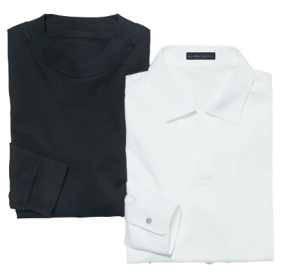 シャツ ¥16,500〈AM12760〉・シャツアウター ¥20.900〈AM82679〉・T シャツ ¥8,800〈18109-118〉・ ポロシャツ ¥19,800〈PA18108〉(すべてオーダー価格)