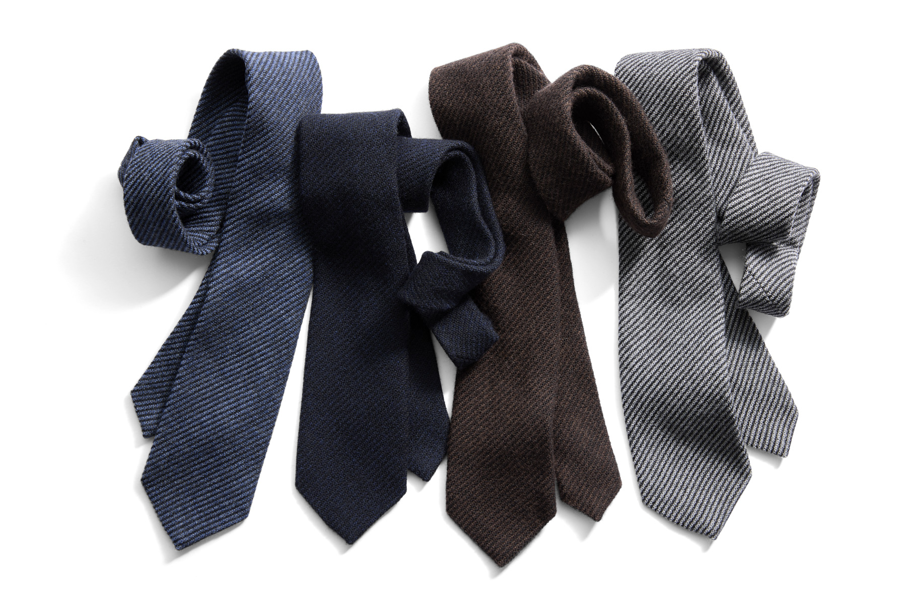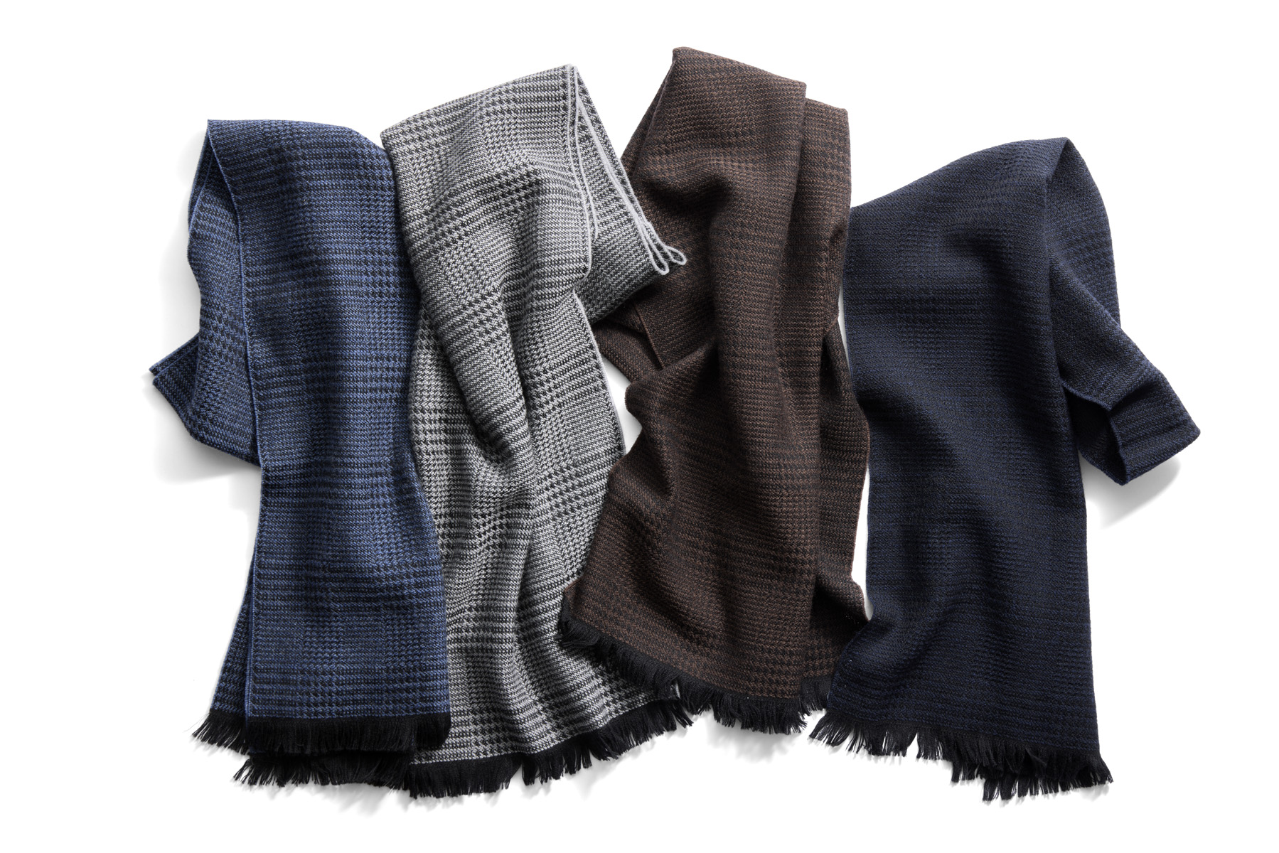 イタリアのコモ産のシルク製品は、ヨーロッパ繊維市場の約80%を占め、世界中のラグジュアリーブランドが生産している世界最高基準と評されています。そのコモの最大手で、数多くのブランドビジネスを手掛けるPINTO社と麻布テーラーが取り組み、ラグジュアリーブランドと同様のクオリティで完成したのが、この企画です。イタリアが世界に誇る名門紡績、ゼニアバルファ社のキャッシュウールを使用し、同じ糸でソリッドネクタイとグレンチェックとヘリンボーン柄のマフラーを作成。発色も良く、シルクのような光沢と、カシミヤライクのやわらかな風合いは、冬の胸元を華やかなに演出してくれます。同じ素材と色で柄が違うユニークなコンビネーションも、貴方だけの個性を表現できます。