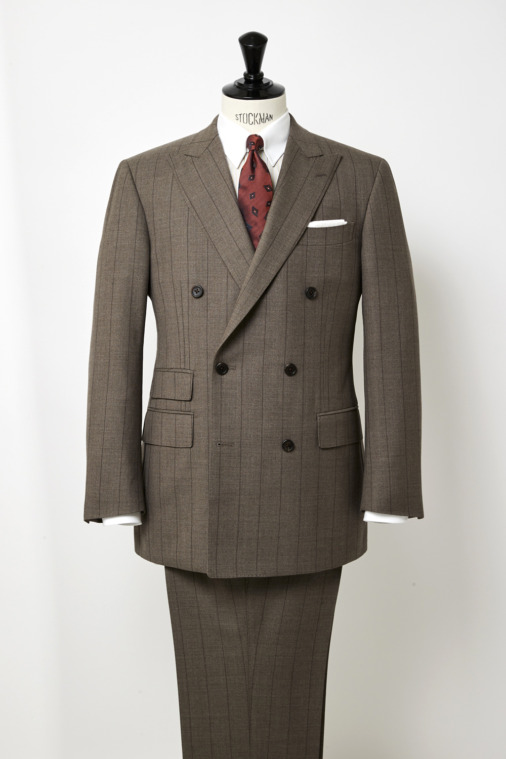 ロロ・ピアーナならではの柔らかさをそのままに、英国素材ばりの仕立て映えと、特殊な撚りによるナチュラルストレッチ性、シワに対する回復力も兼ね備えています。麻布テーラーが目指す、都会でのハードなビジネスシーン、そしてドレスダウンしたスタイルにもマッチする汎用性が魅力です。スーツ素材の筆頭トレンドでもある、英国調ビンテージ感ある杢糸ベースのワイドストライプ柄のグレイジュとブルーをセレクトしました。