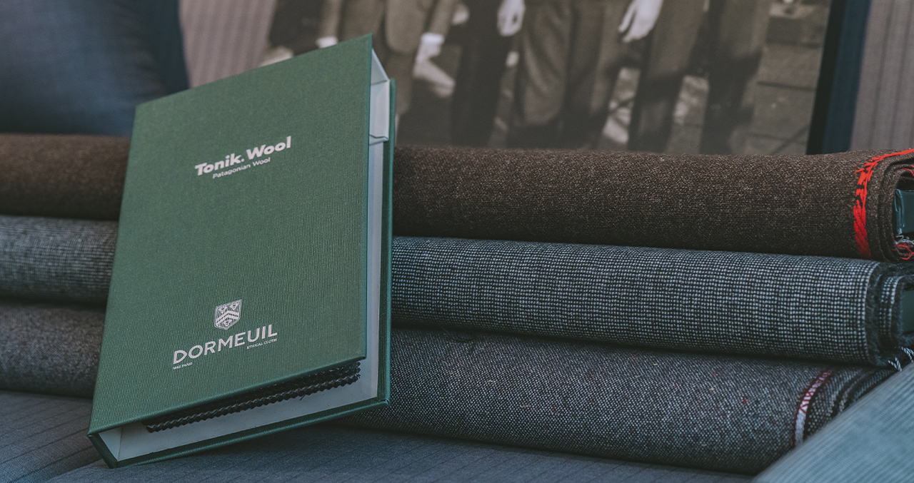 他には無い生地が麻布テーラーにはあります。世界に名だたるブランドの別注生地を毎シーズン展開しています。しかし、その別注もただ単に売れ筋の生地を用意しているわけではありません。本物という意味合いの「クラシック」をベースにしながらも、今、着たいという「革新的な時代性」のある生地がコンセプトです。そして、麻布テーラーが自信をもっておすすめしたい生地が、ドーメルのパタゴニアウール。1957年に発表された、ドーメルのシンボルでもあるトニックの風合いをパタゴニアウールのみで織り上げた新パタゴニア素材です。
