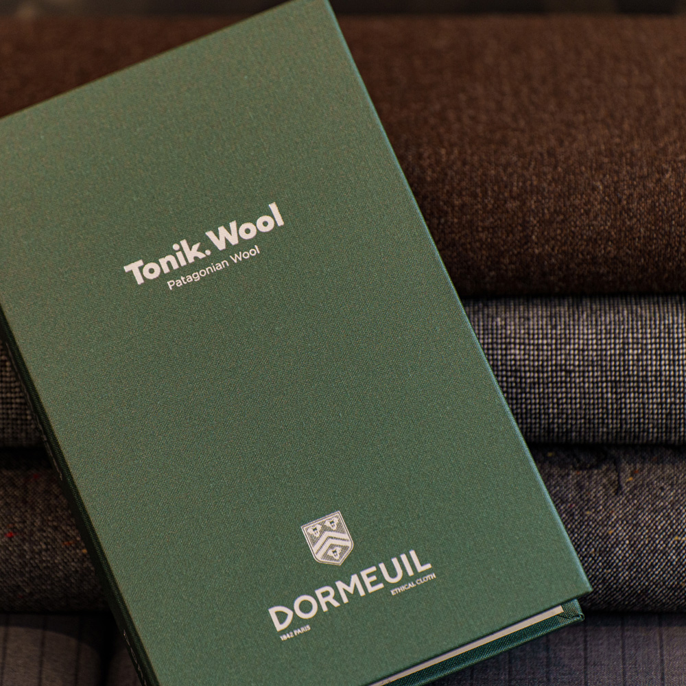 トニックは1957年に発表され、現在でも30%モヘア使用の<TONIKⓇ2000>、そして90%モヘアを使用した<NEW TONIKⓇ>と形をかえながらも展開している、ドーメルのシンボル的ロングセラー素材です。今回、麻布テーラーが着目したPATAGONIA WOOL(パタゴニアウール)は、オリジナル<TONIKⓇ>の風合いをパタゴニアウールのみで織り上げた新パタゴニア素材です。アンデス山脈から拭き下ろす強い風と灼熱の暑さの自然環境にある南アメリカ大陸のアルゼンチンとチリに跨るパタゴニア地域で良質なパタゴニアウールは産出されます。パタゴ二アウールはクリンプが多く、強く膨らみがあり、服地に仕上げると通気性、保湿性、そして伸縮性を併せ持ち合わせます。毎年限られた量の原料の刈り上げとなり希少性高い原料です。その革新的な夏のラグジュアリー素材に麻布テーラーのセンスが光る色柄を別注しました。