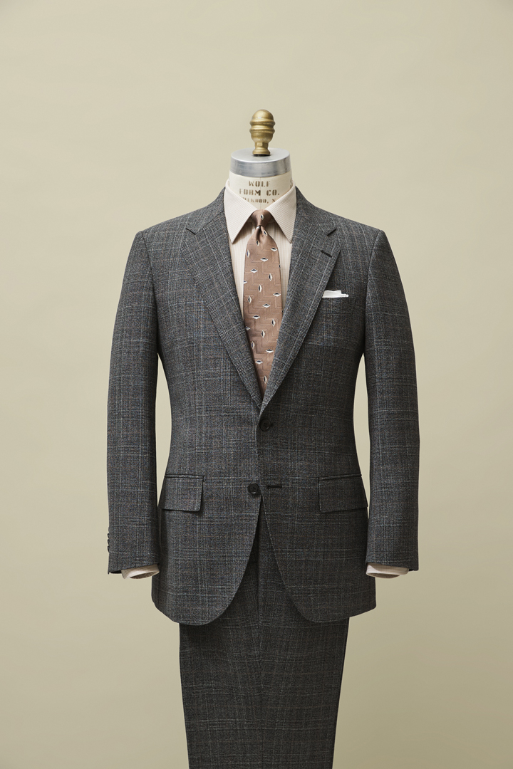 今シーズンのファブリックトレンドである「クリスピーでエアリー」「ソフィスティケイティドなレトロパターン」。あえてベース色と同系色の意匠糸でチェック柄を構成することで、トレンドの英国調を感じながらビジネスシーンにもマッチする品格も持ち合わせています。また、クリスピーな素材感で柄の主張がマイルドになっているので、手持ちのシャツやネクタイとのコーディネーションがしやすいのも特徴です。さらに、パタゴニアウールはトレーサブルとなっており、原料の選定からパタゴニアウール服地の織り上げの各生産段階までのプロセスも特定、認証されています。まさに、今を感じる最旬生地です。
