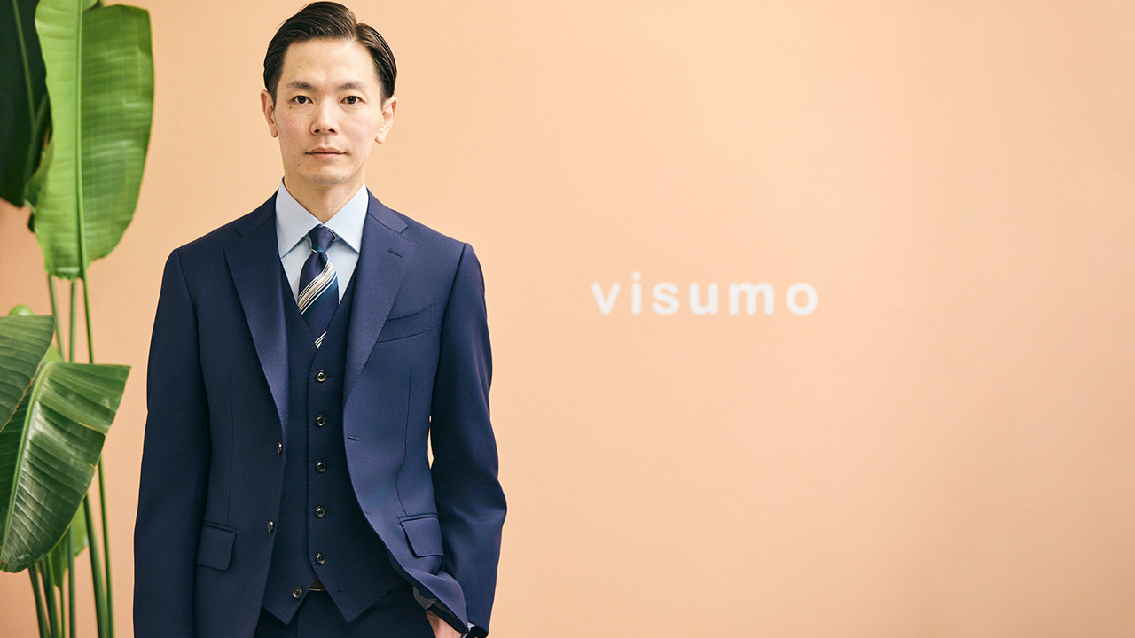 「麻布テーラーの人々」と題し、麻布テーラーと深く関係のある一線で活躍をされている方々にお話をうかがう本連載。今回は、企業の多様なビジュアル活用を支援しているビジュモの代表取締役社長、井上 純さんのご登場です。今、多くの企業が当たり前のように活用するようになった、消費者が「Instagram」や「X」などのSNSに投稿するUGC(ユーザー生成コンテンツ)を収集する機能に加え、ファッションブランドでは販売スタッフのコーディネート画像などを収集し、ブランドの公式サイトでデジタル接客を強化するサービスを提供しているビジュモ。今注目ですすべきIT企業の代表が着こなす、麻布テーラーのオーダースーツの魅力に迫ります。