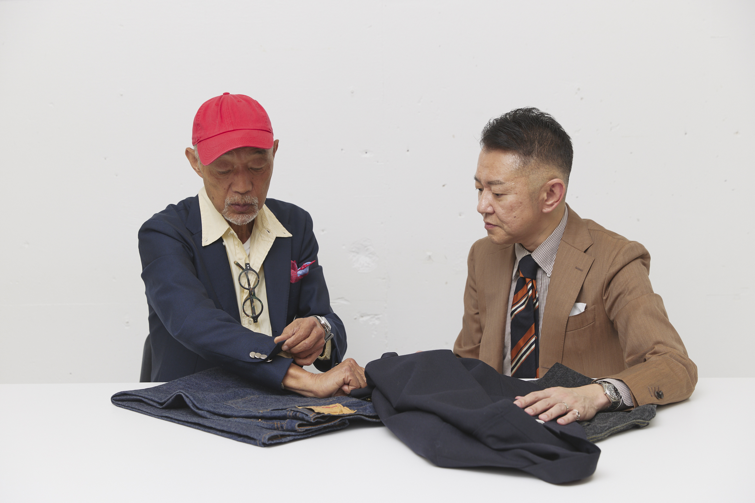 伝説的なデニムデザイナーである「RESOLUTE(リゾルト)」の林 芳亨さんと、当ディレクターの上月 剛は、旧知の間柄。 ファッションやモノづくりに対する情熱をはじめ、互いに響きあう部分が多いせいか、会えばいつも時間を忘れて盛り上 がってしまうそうです。今回はそんな二人が「ブレザーとジーンズ」をテーマに座談。ジーンズに合う今どきのブレザーを お探しの方は必読です!