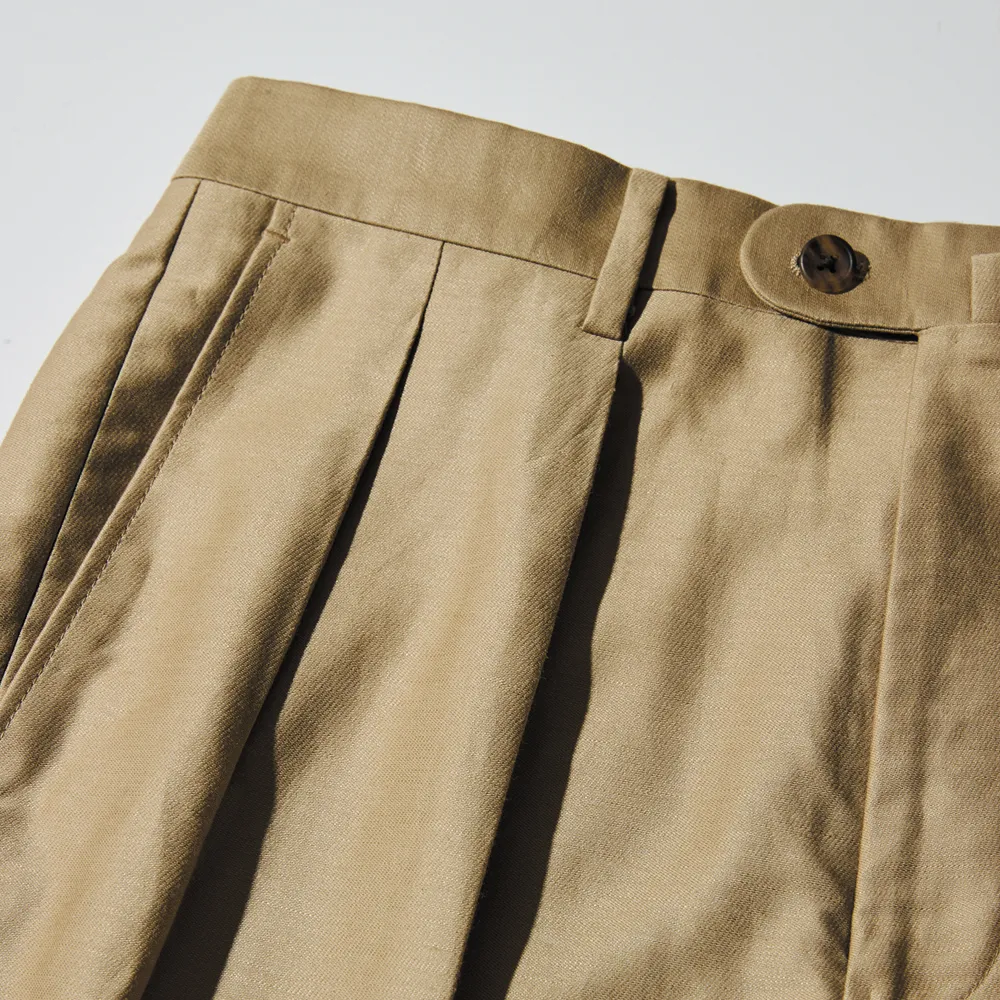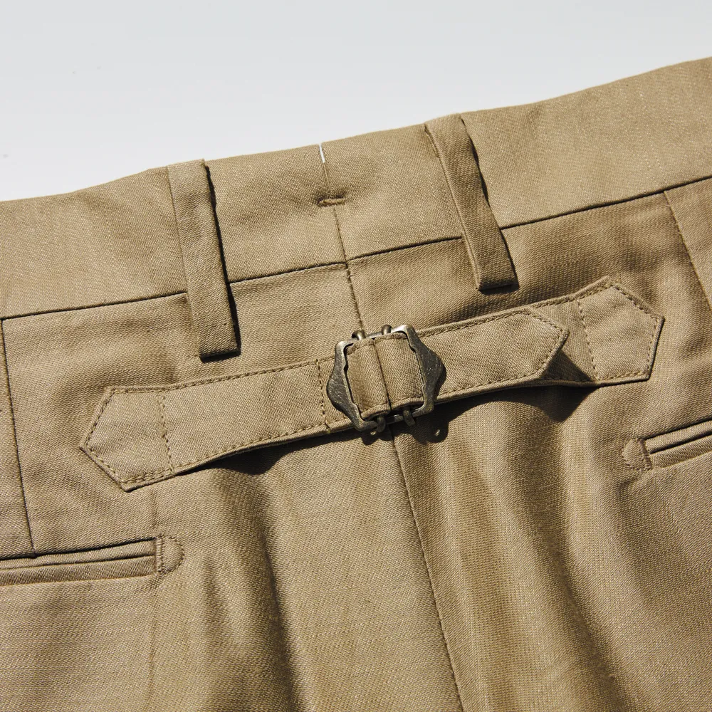 ゆとりある腰まわりを実現する2インタック仕様と、クラシカルな表情を演出するバックストラップが、着こなしに品格を添えつつ、どこか懐かしいアイビーの香りを漂わせます。