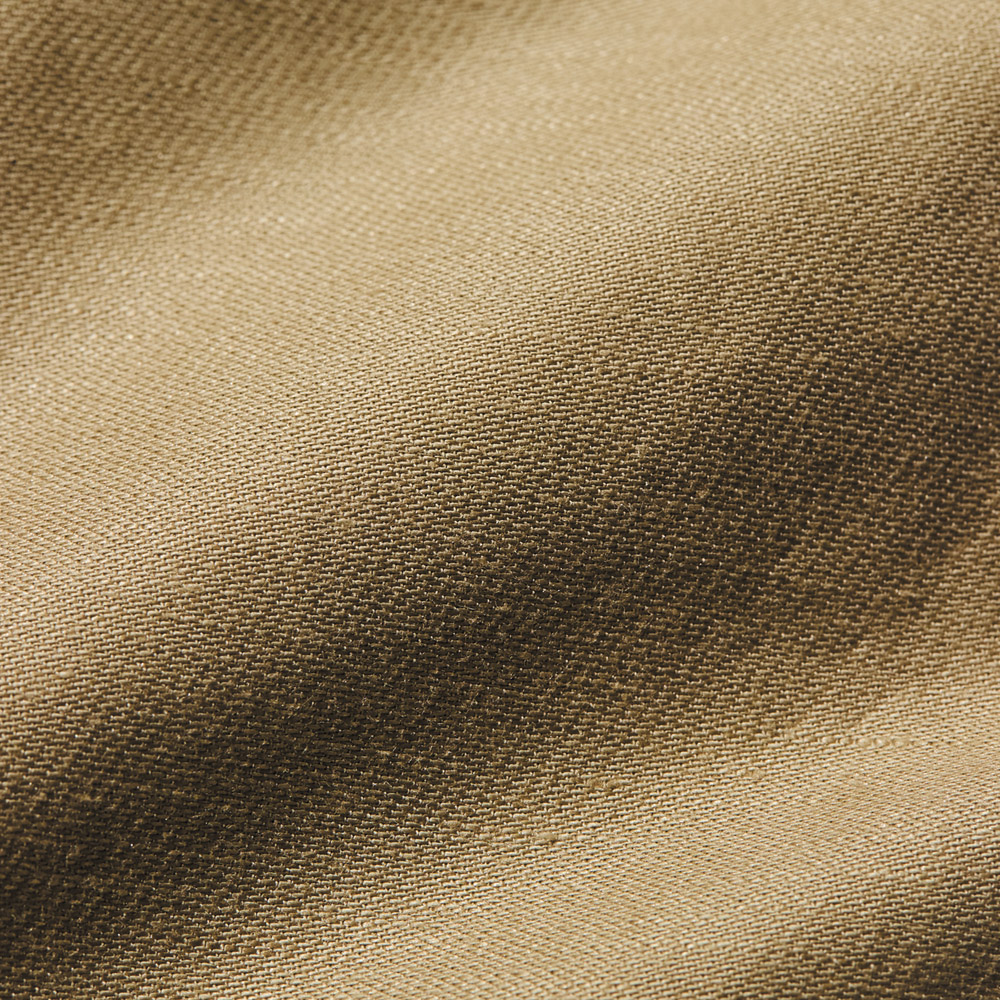 素材にはコットンリネン混のバックサテンを採用。特殊染色と長時間の揉み込み加工で生まれる自然な表面感、裏側の朱子織構造によるさらりとした肌触りが特徴です。さらに、ご家庭での洗濯も可能で、ビジネスからウィークエンドまで、幅広いシーンで活躍します。