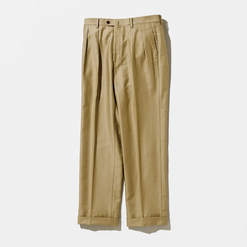 昨シーズンリリースした「ドレスベイカーパンツ」に続き、よりクラシカルな印象の「2インタック・バックストラップ仕様」のドレスチノが登場。上質なコットンチノ素材をベースに、テーラリング技術を落とし込み、カジュアルパンツの快適さとドレススラックスの上品さを両立させました。