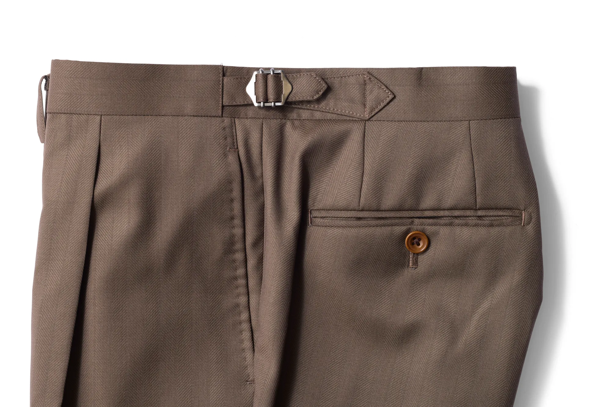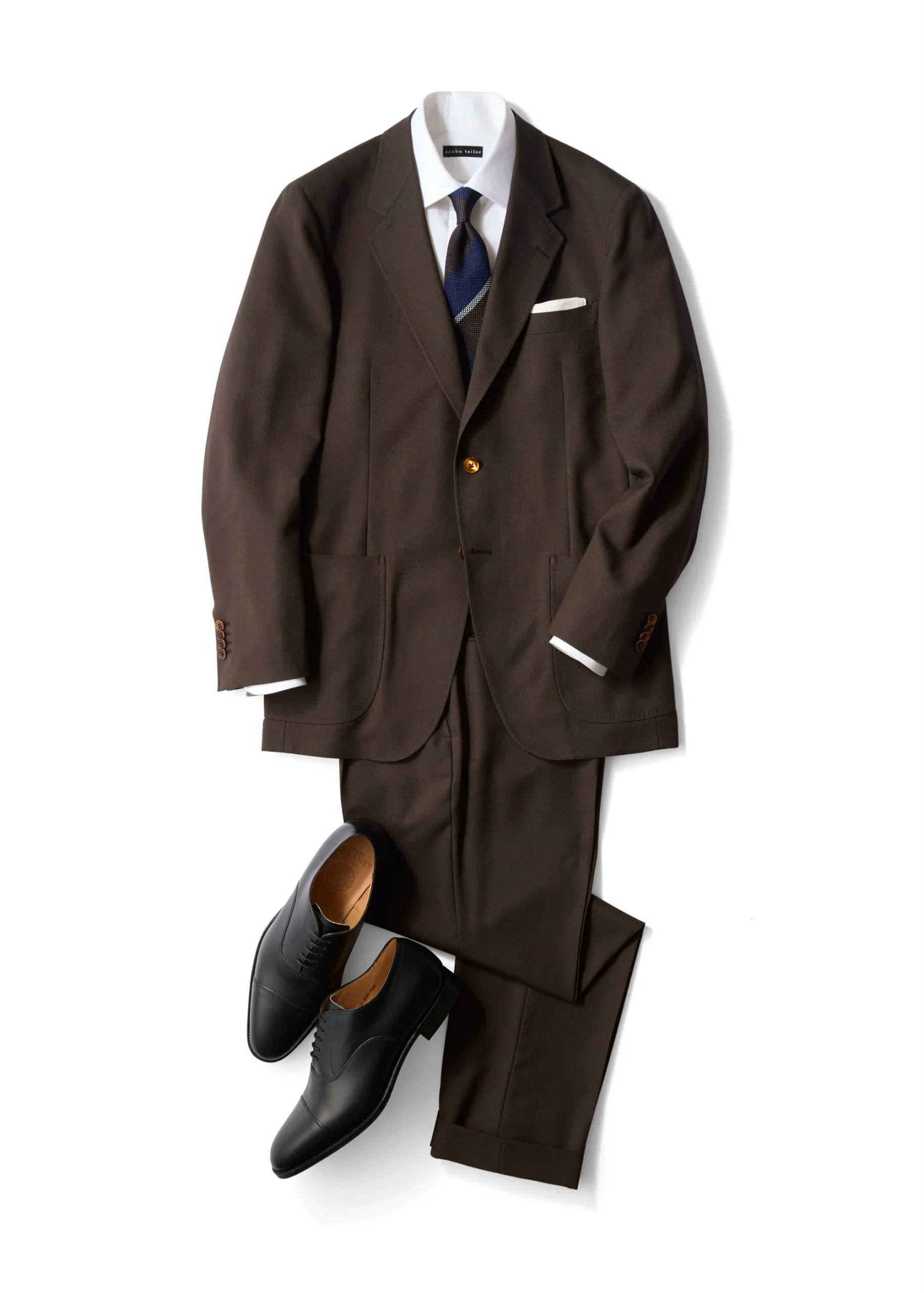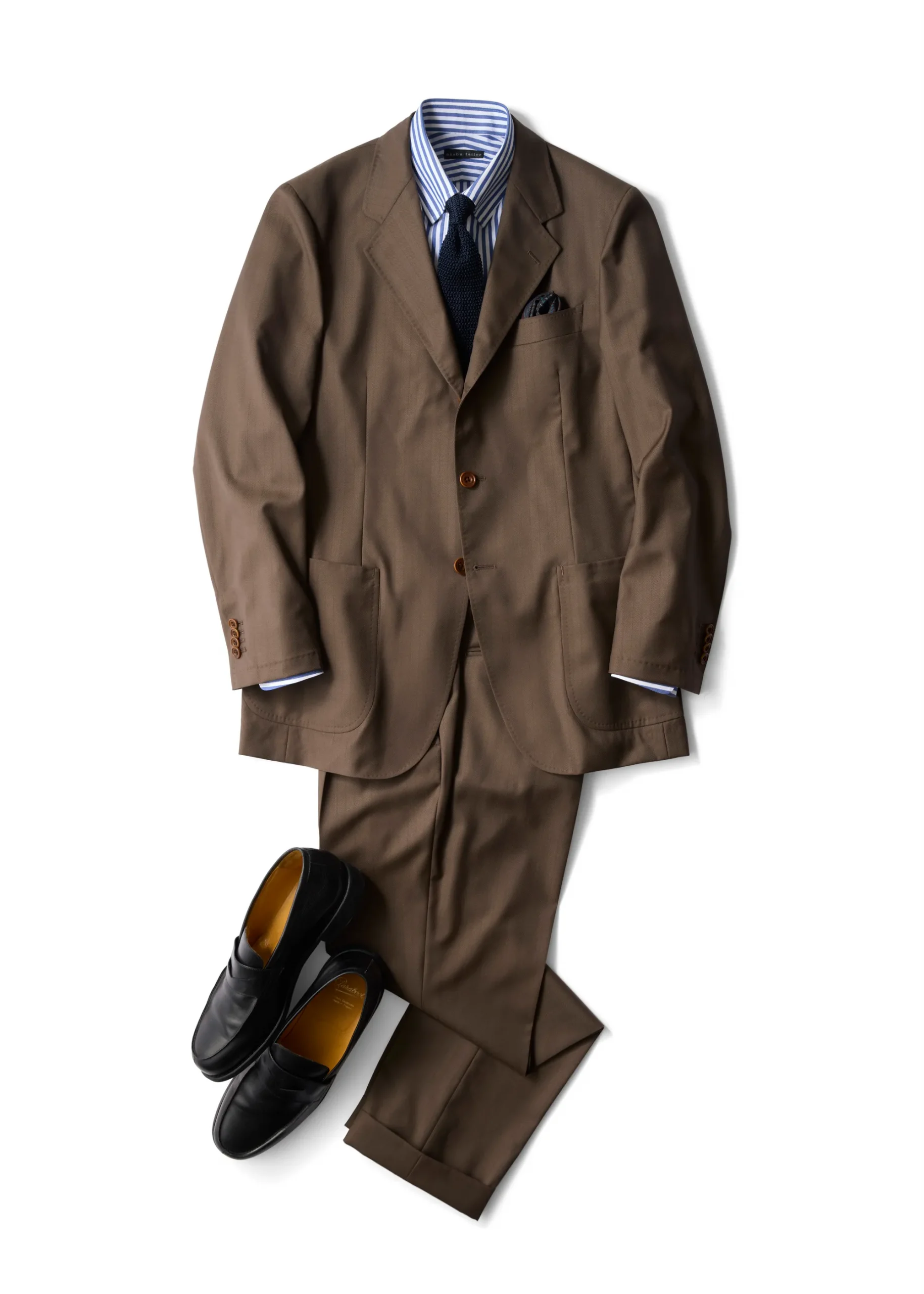 上質なSuper110’s原毛を使用し、エレガントな風合いと快適な着心地を実現。幅広ヘリンボーンの織柄は、一見コットンスーツのようなナチュラルな佇まいを演出し、クラシックながらも新鮮な印象を醸し出します。シンプルな無地だからこそ、ビジネスシーンにも馴染みやすく、スタイルの幅は無限大。ニットポロを合わせれば、肩の力を抜いたスマートカジュアルが完成。オンからオフまで活躍する、洗練と柔らかさを兼ね備えた一着で、自由な着こなしをお愉しみいただけます。