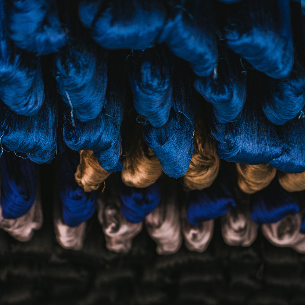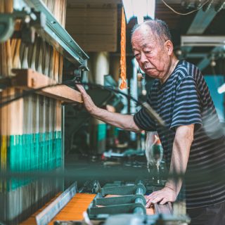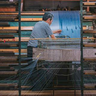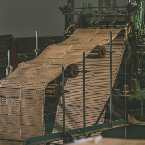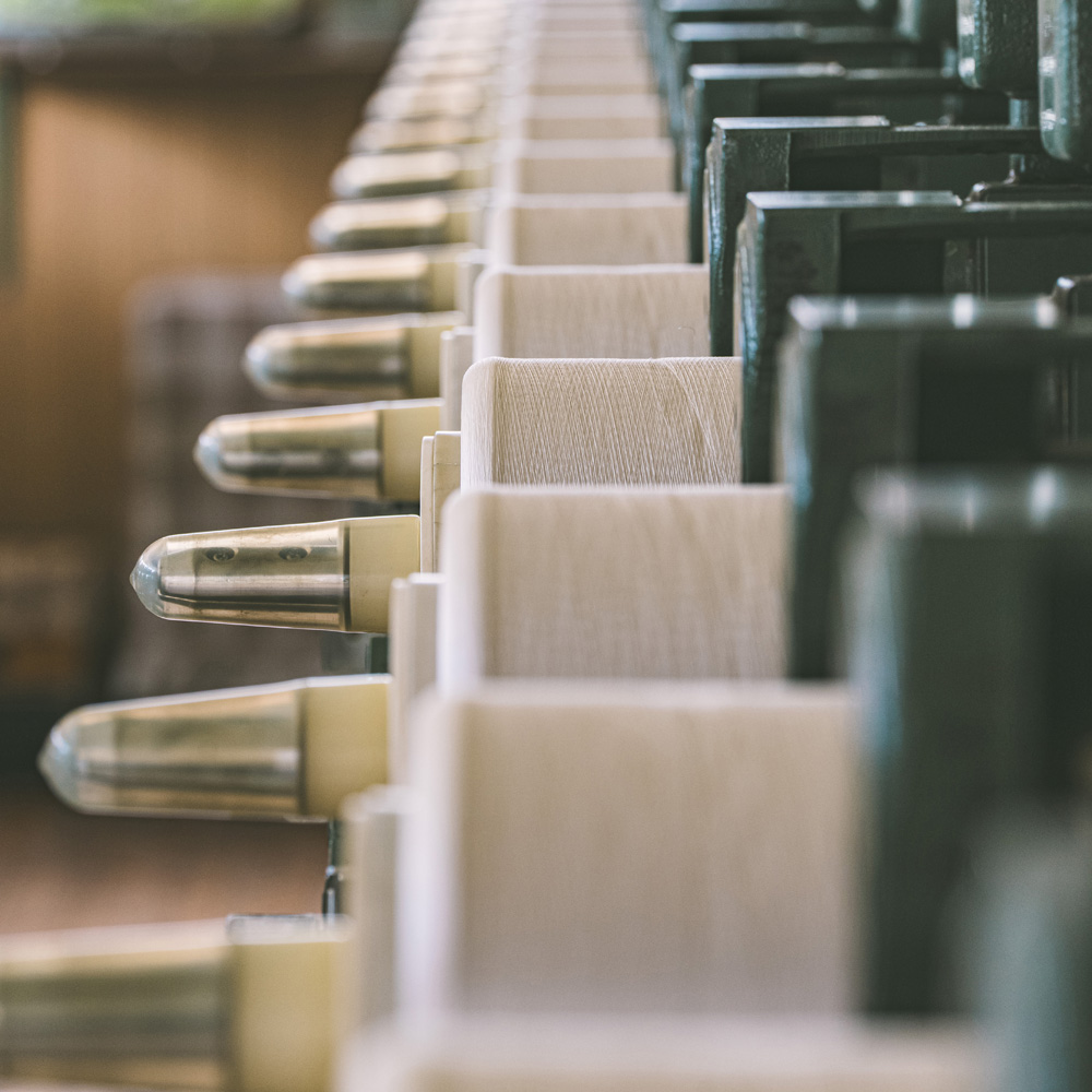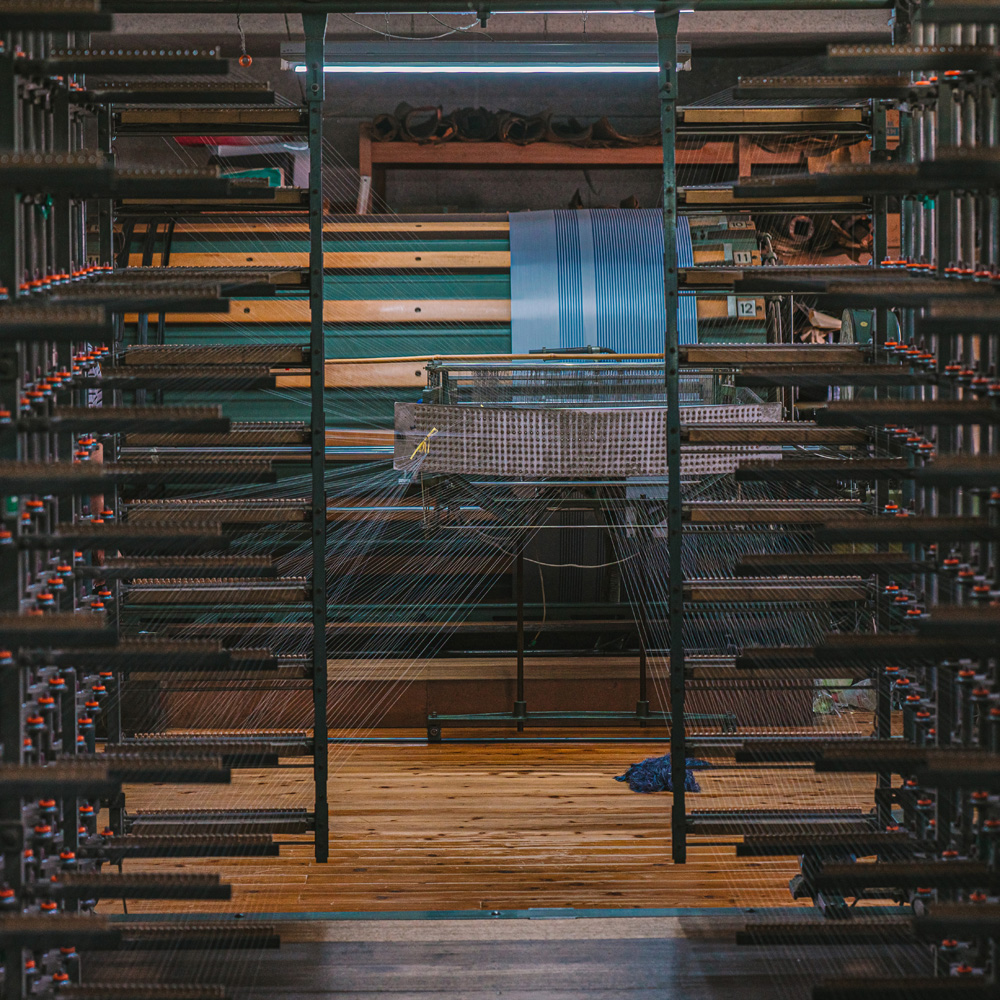 今回別注したのは、山梨県富士吉田市で織り上げた、特別なシャンブレー裏地です。現在では高級な裏地の生産地としても高明の富士山の麓に広がるこの地は、平安時代から続く織物の名産地。撚糸・染色・整経・製織・整理といった工程を地域の職人が分業で担い、気温や湿度のわずかな変化にも目を配りながら、丹念に品質を高めています。だからこそ実現できた、麻布テーラーだけの逸品です。