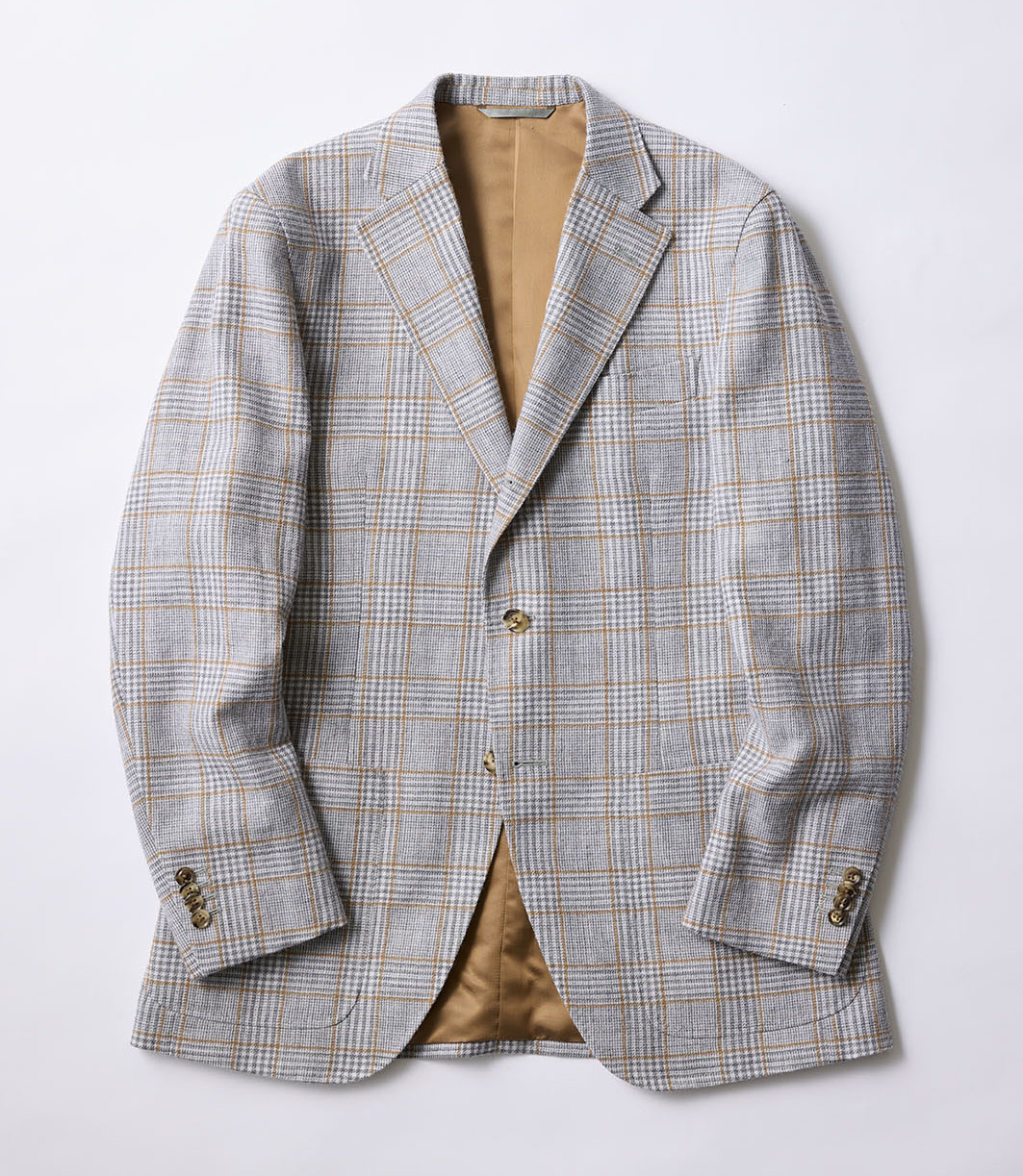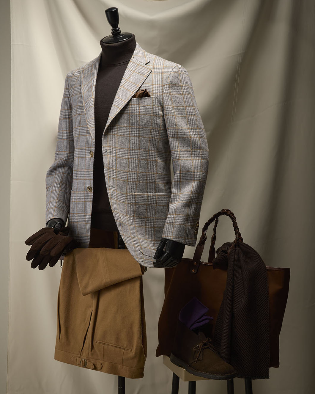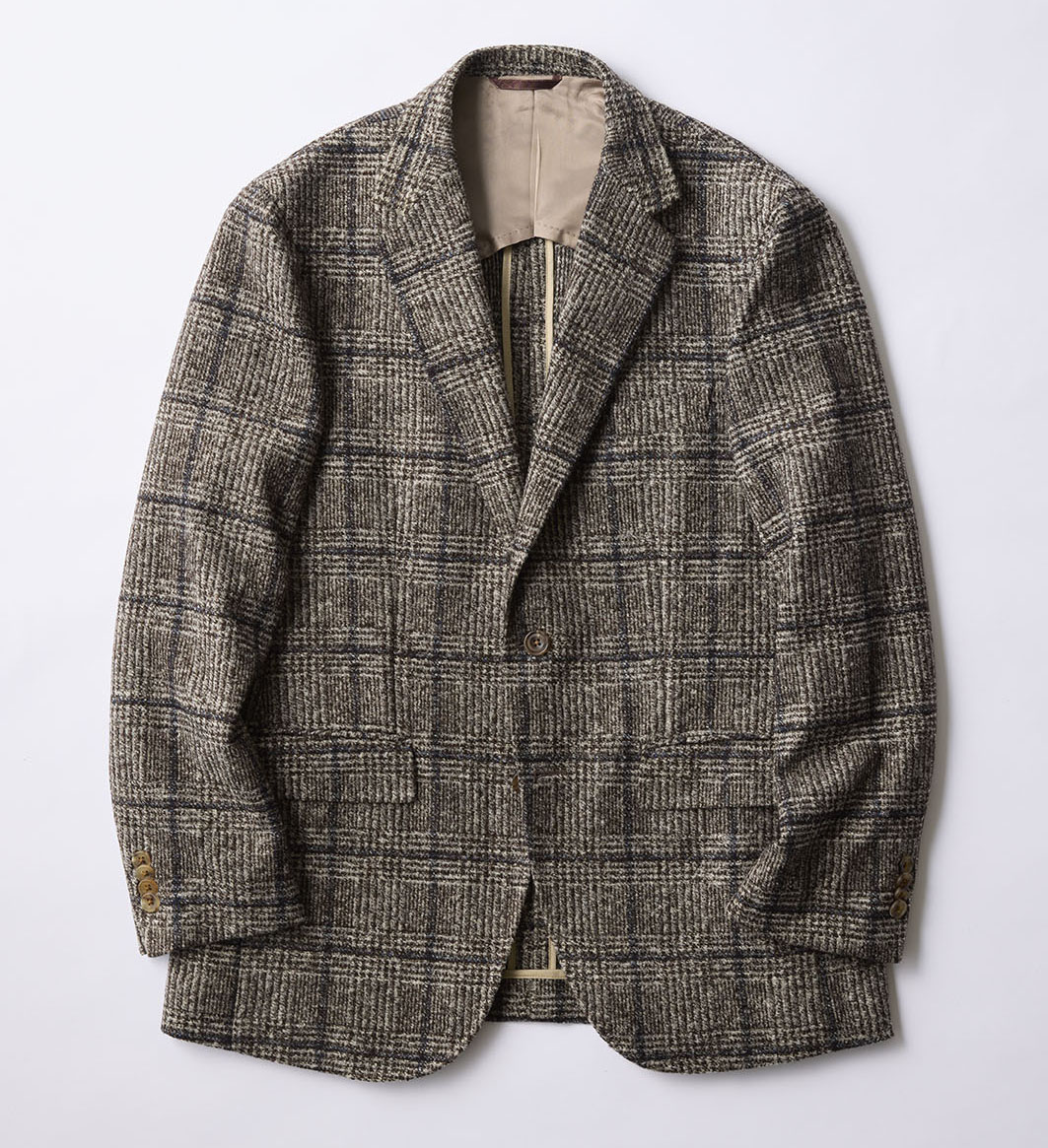 一見するとカントリー素材の代名詞であるツィード。実は、伸縮性あるジャージー素材で表現したイタリアならではの逸品。今シーズンの筆頭トレンド柄であるグレンチェックを都会的に着まわせる秘訣は、素材の機能性にあります。