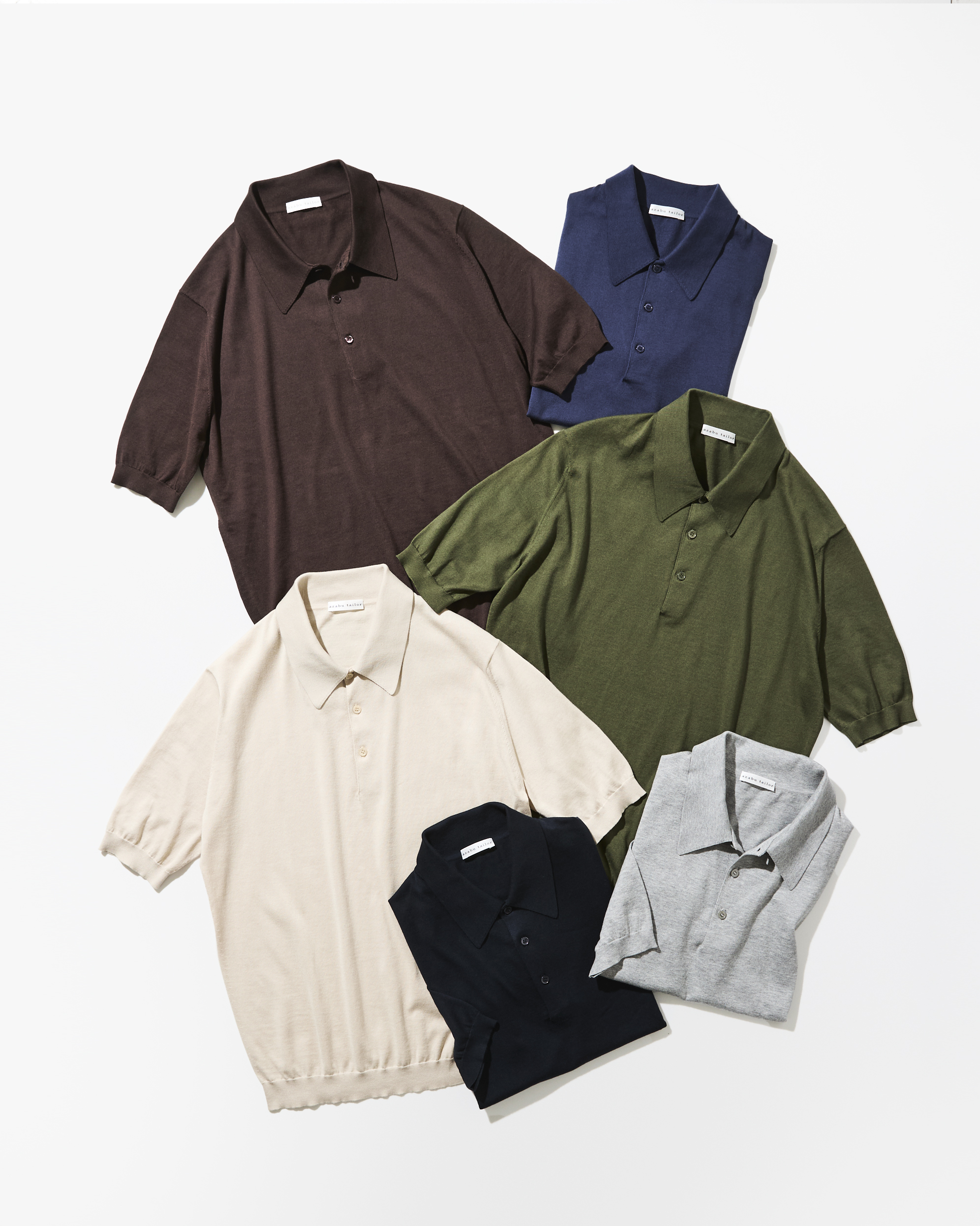 カジュアルな定番の鹿の子素材のポロシャツと比べて、しなやかなニットの風合いで、上品でリッチな洒落感をもたらせてくれるのがニットポロシャツ。袖口や裾のリブ編みや、衿やショルダー、アームホールなどの接ぎ目に目立てが施されているなど、ニットと共通するディテールを備えているのがニットポロと呼ばれる所以。そのため、ジャケット・スラックスや革靴といったドレスアイテムと相性が良く、夏のクールビズスタイルも上品でリッチな洒落感をもたらせてくれるアイテムです。今シーズン、初めてお目見えする麻布テーラーオリジナルニットポロシャツは、インナーウエアとしての上質な着心地を実現する最高級素材、アウターウェアとして一枚でも様になるスタイリッシュさを実現するパターン、そしてデイリーに使えるホームウォッシャブルも可能な実用性も兼ね備えています。さらに、カラーはネイビー・インディゴ・カーキ・ブラウン・ベージュ・グレーの6色展開。トレンドの1トーンコーディネートが出来るように、ジャケットのカラーとの調和を考えてセレクトしました。夏のシティスタイルにピッタリの至高のニットポロシャツ、ぜひお楽しみください!