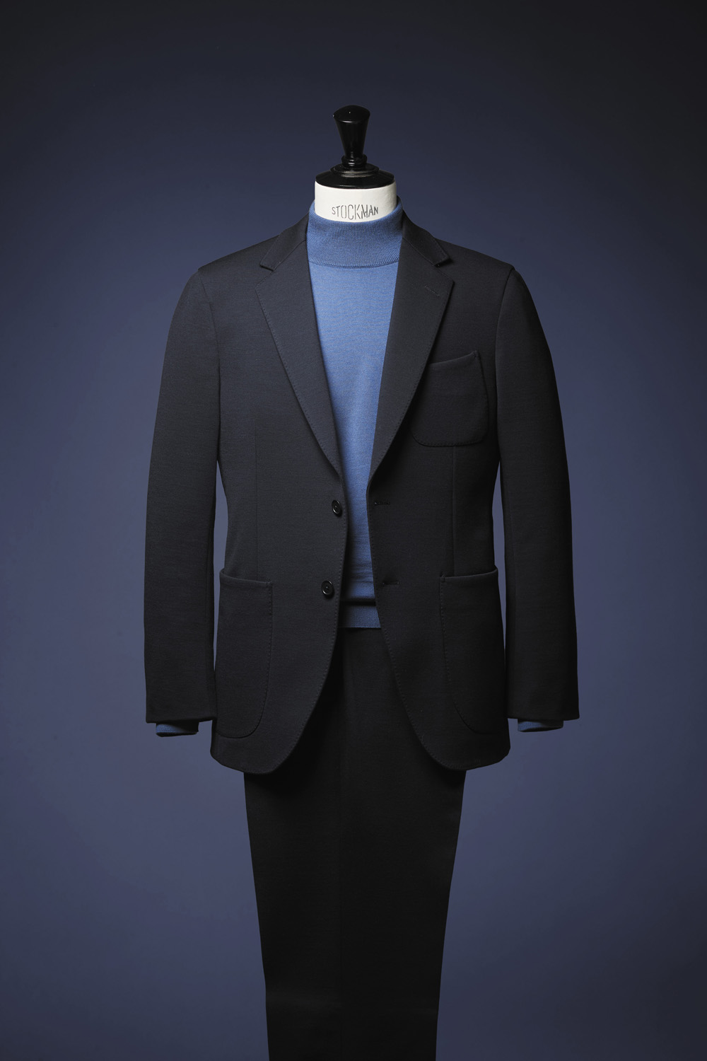 現在はクロスエルメネジルドグループに入っている、最高級のジャージー素材の生産をしているドンディとのコラボレーション。ファインウールとナイロン、ポリウレタンの糸で編まれたポンチ組織となっています。ウールを使用することにより見た目に高級感をもたせながらもシワになり難く、ナイロンとポリウレタンを加えることによりモダンな外観を表現しています。
