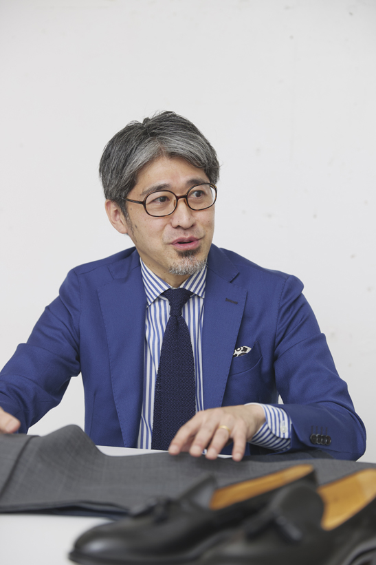 越智:そういうお客様は多くて、春夏はスラックス単体のオーダーがとても増えます。村井さんの場合、お履きになるシューズとのバランスを考慮してオーダーされていたのが印象的でした。