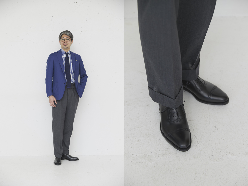 越智:本日はその作成したスラックスごと、実際にどのようなシューズと服を合わせるのか、村井さんならではのコーディネートを披露していただけないかという無茶なお願いをさせていただきました。