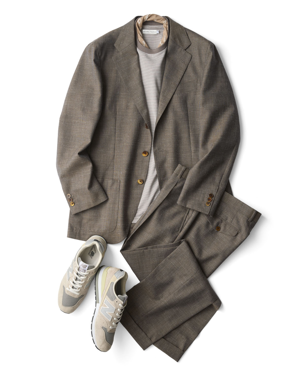 軽やかで涼感のあるウール×リネン素材。副資材を極限まで省いたAIR LIGHT仕立て。そして着こなしの幅を広げる釦バリエーション。セットアップという選択が、夏の装いをより自由に、快適にします。