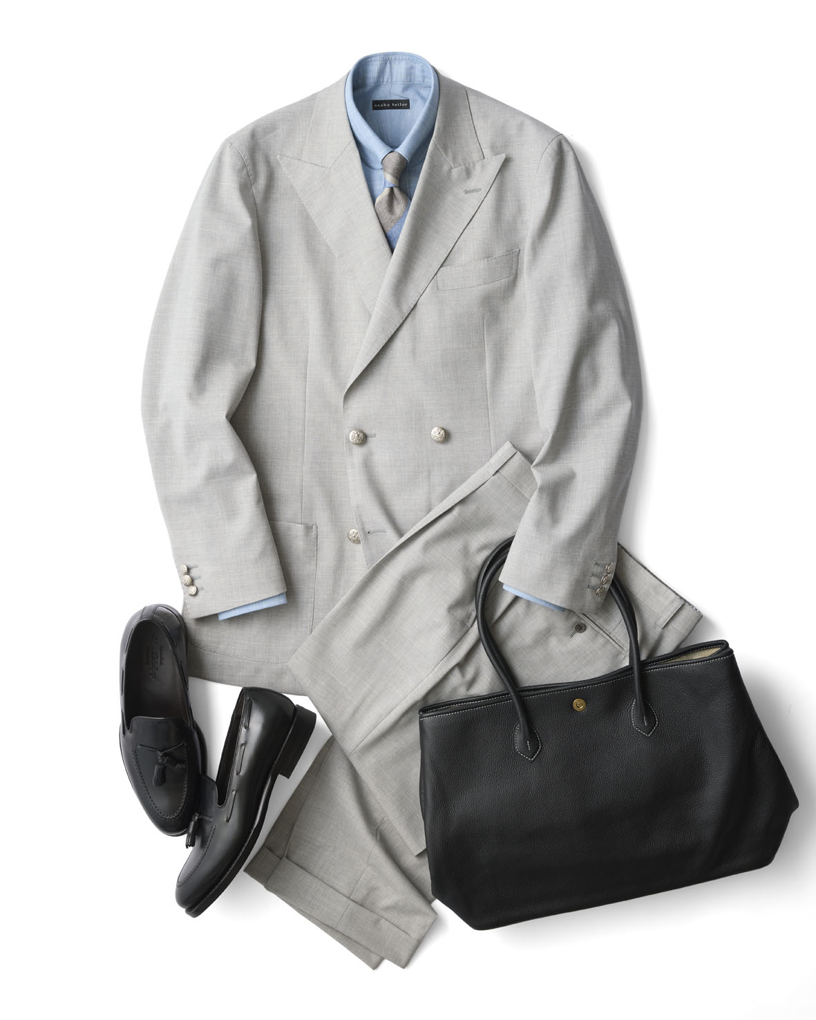 麻布テーラーでは「生地」「仕立て」「デザイン」「釦」の組み合わせによって、お客様一人ひとりに最適な一着をご提案しています。今シーズンのセットアップでは、特に以下の要素にフォーカスしています。
