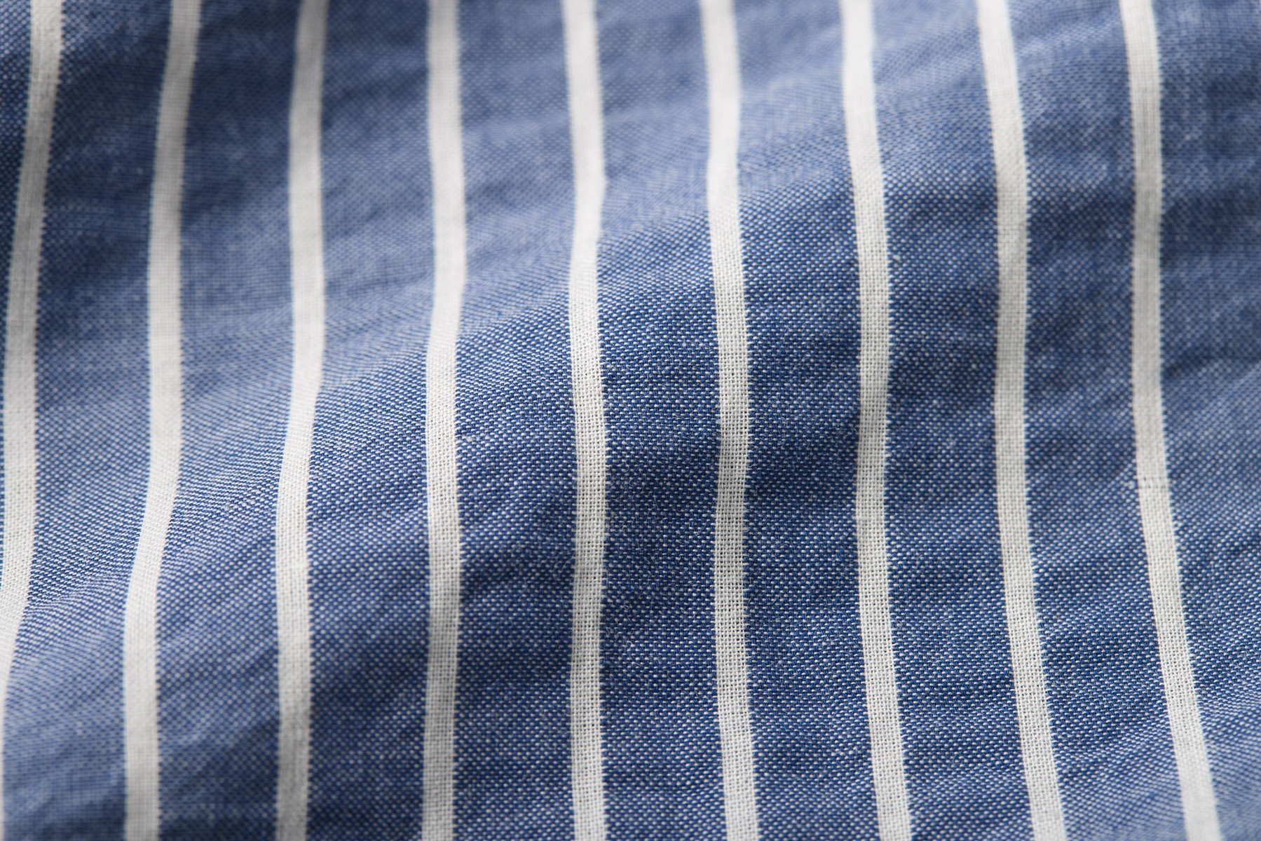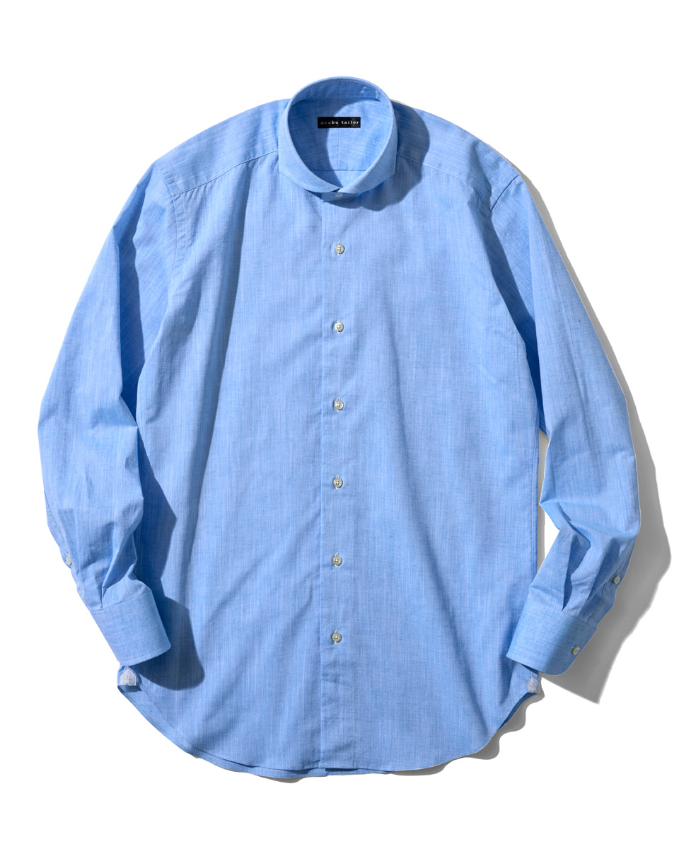 上質なコットンをタテ糸に使用し、ヨコ糸にはコットンとリネンをブレンドした混紡糸を使用。リネンの糸フシが表面に美しく現れ、リネン特有のシャリ感も程よく残した、清涼感に富んだ夏に最適なドレスシャツ生地となっています。カッタウェイカラーで仕立てれば、夏のビジネススタイルにもフィットします。