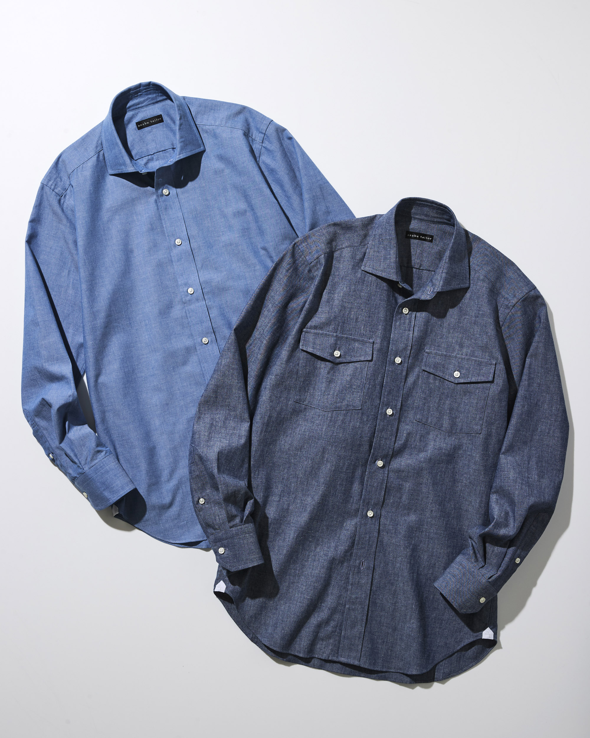 左(AM19169) オーダーシャツ ¥17,600 / 右(AM19219) オーダーシャツ ¥17,600+ポケットオプション ¥1,650