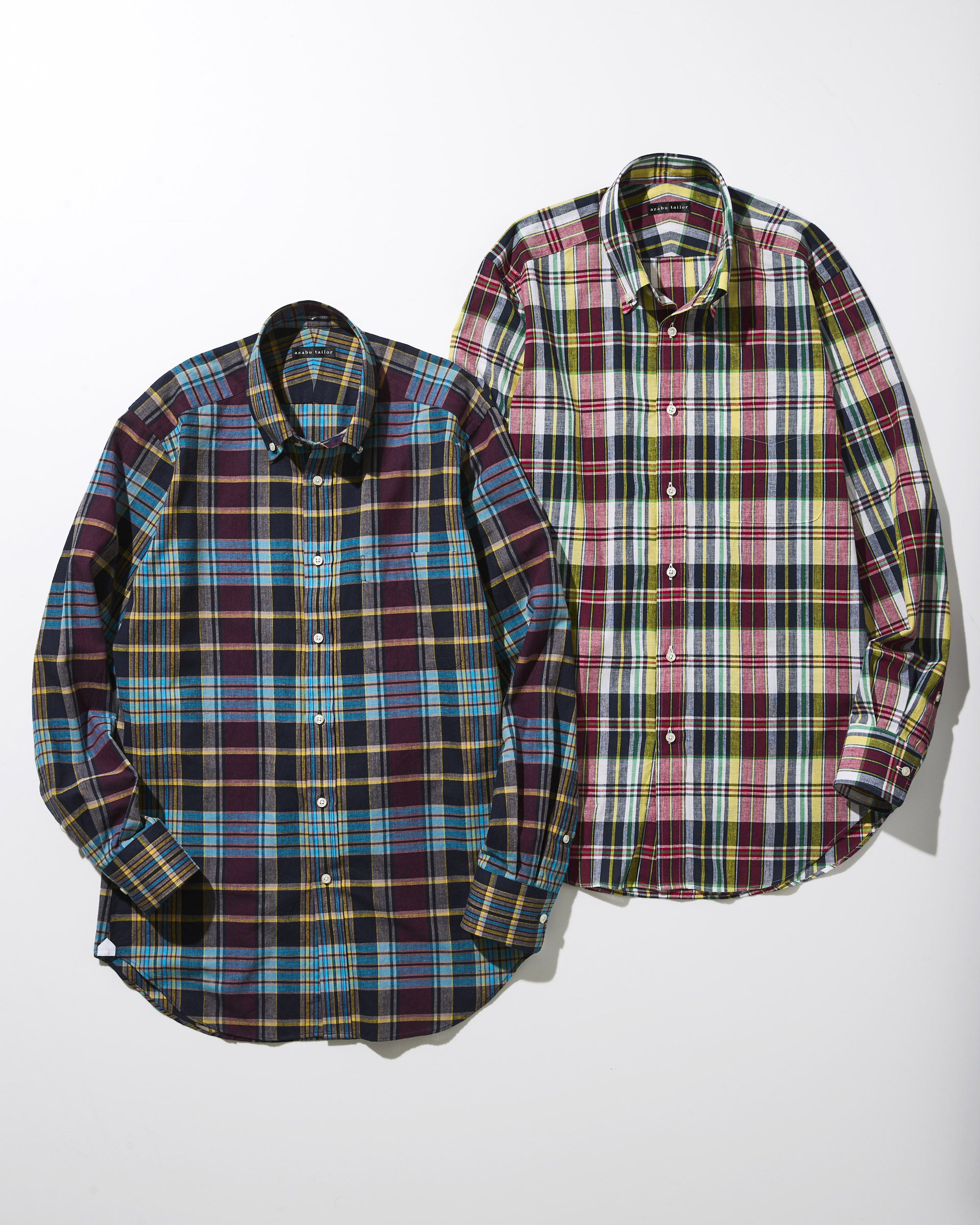 インド南東部のマドラス地方の伝わるマドラスチェックは、何代にも渡って受け継がれてきた伝統的な織物です。麻布テーラーでは、昔ながらの織り機により、ゆっくりと糸を傷めないよう織り上げ、独特の風合いを生み出す本格的なインドマドラスに注目。コットンパンツやデニムに合わせるなど、カジュアルな印象も強いマドラスチェックはボタンダウンとも好相性。ネイビーブレザー、ブレーザーボタンとのコーディネートも想定して、シルバーやイエローゴールドをアクセントカラーにした、上品な色柄をセレクトしました。