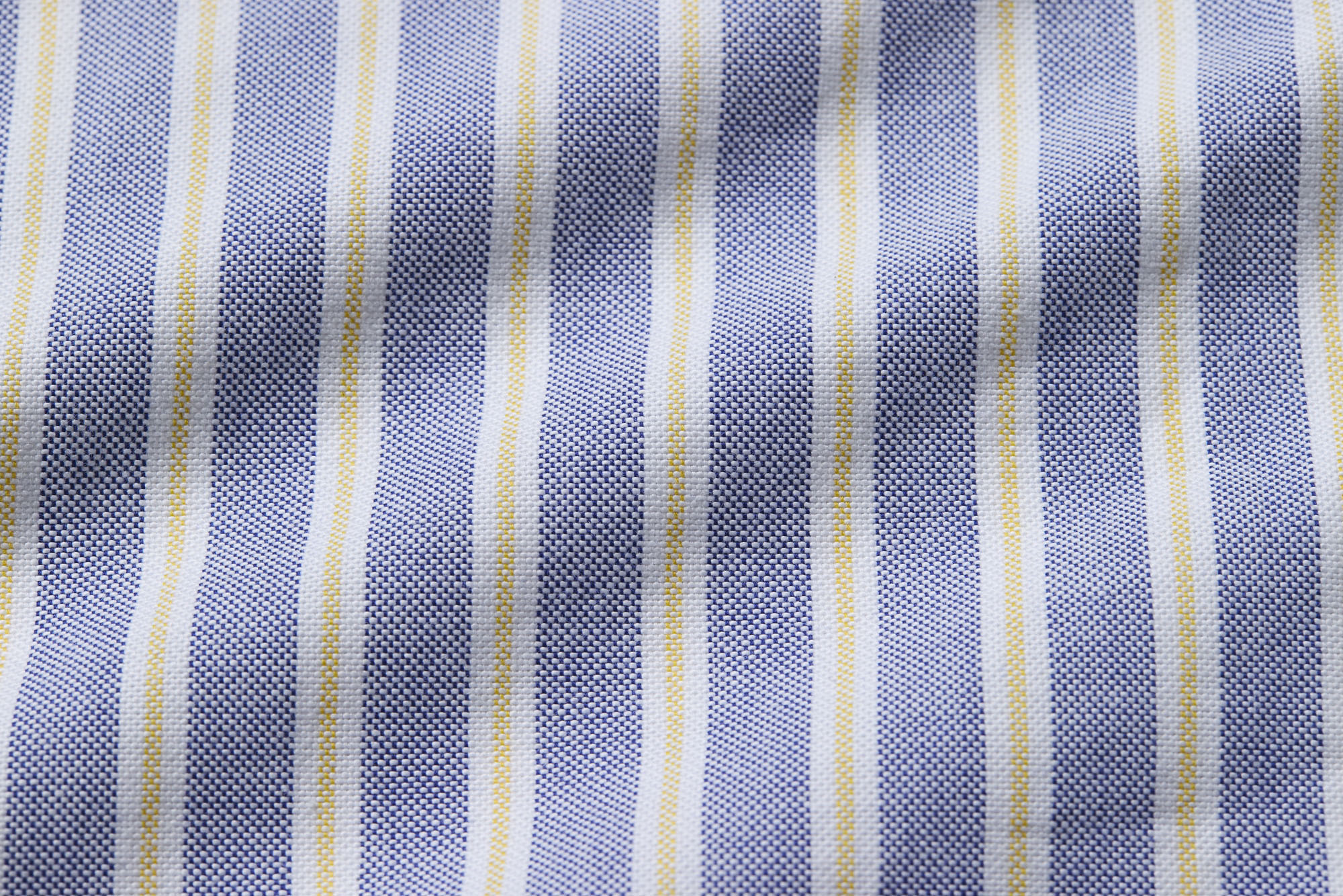 タテ糸を2本引き揃えておられた平織りで 適度な隙間があり通気性に優れているのが特徴のオックスフォード。19世紀にスコットランドの紡績会社がオックスフォード、イェール、ケンブリッジ、ハーバードの名門大学の名前を生地の名前にして売り出したことが起源と言われています。荒い素材感がカジュアルな印象でブレザーと相性の良いオックスフォード。その表面感からシャツパンツでのスタイルにも活躍します。今シーズンは、クラシックなストライプ柄に注目。タイドアップでもノータイでも活躍するラウンドカラーとも相性抜群です。