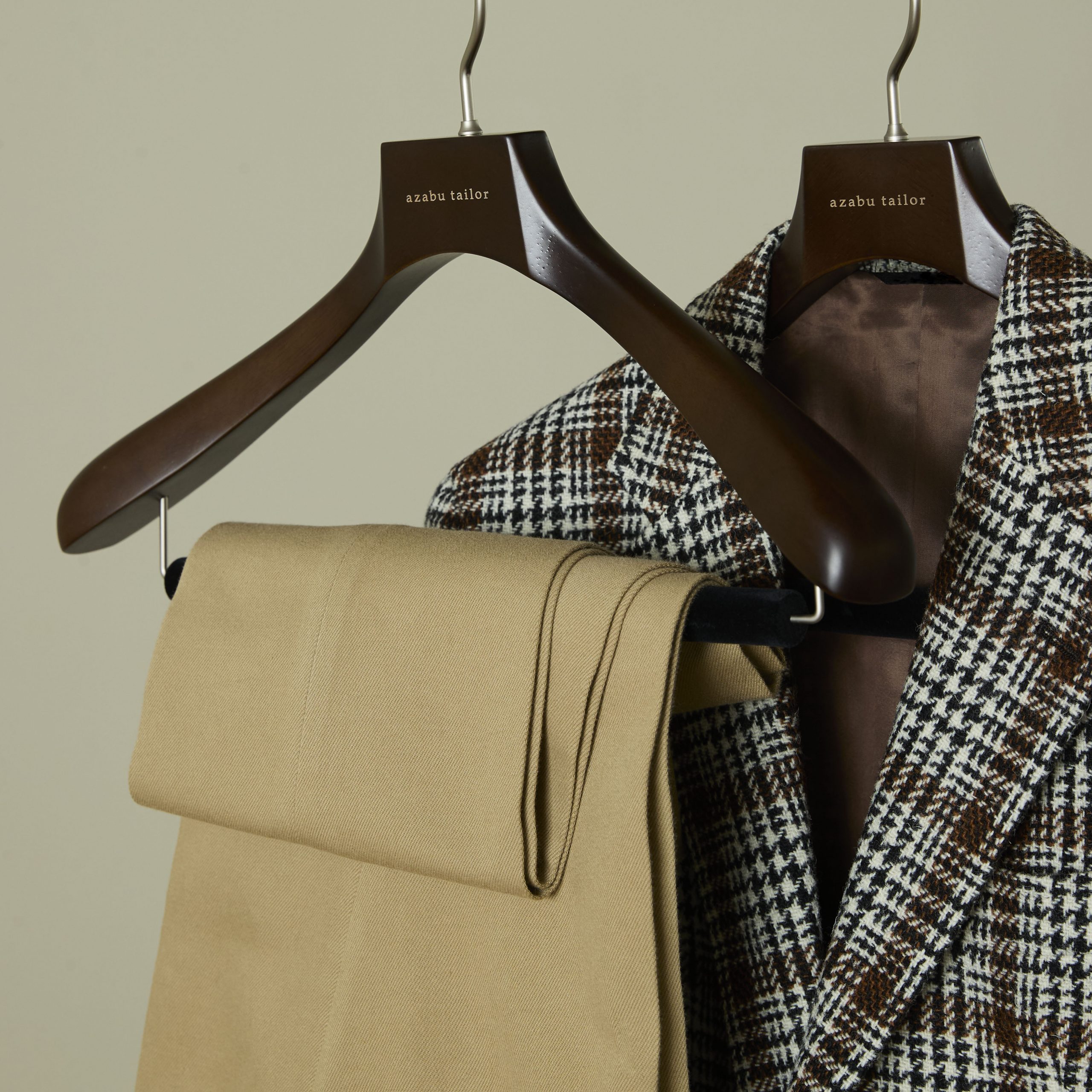 麻布テーラーから、環境への配慮と機能美を兼ね備えたオリジナルの木製ハンガーが新発売。