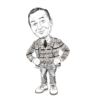 1957年、東京生まれ。愛称は“画伯”。米国イラスト界の黄金期といわれる1950年代のコマーシャルアートの継承を目指す、日本を代表するファッションイラストレーターのひとり。2007年より本ブランドのイメージビジュアルを担当し、シーズンごとに我々が抱く理想の世界観を毎回十二分に表現し続けてくれる匠。その裏には、洋服への深い愛が存在する。気になったアイテムは、それが誕生した背景=歴史を踏まえながら自ら着こなす。そして、そこで経験した成功と失敗を真摯に受け止め、その蓄積から自らのセンスを磨き上げ続けているからこそ成しえる技。また、“画伯”の名でお目見えするスタッフの似顔絵も大好評。服だけでなく、人に対しての愛情にも余念がない(笑)。