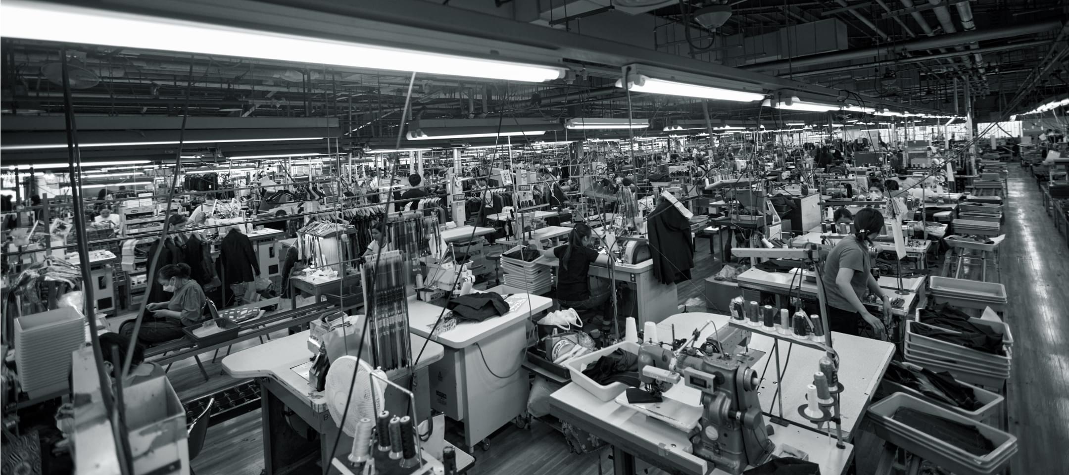個々のニーズに応えることができる幅広いカスタマイズ、そして圧倒的なコストパフォーマンスをかなえる秘訣は、国内2カ所に擁する自社工場にあります。オーダーウエアに特化した、日本でも珍しい服作り現場。そこには、妥協を許さないクラフトマンシップが息づいています。