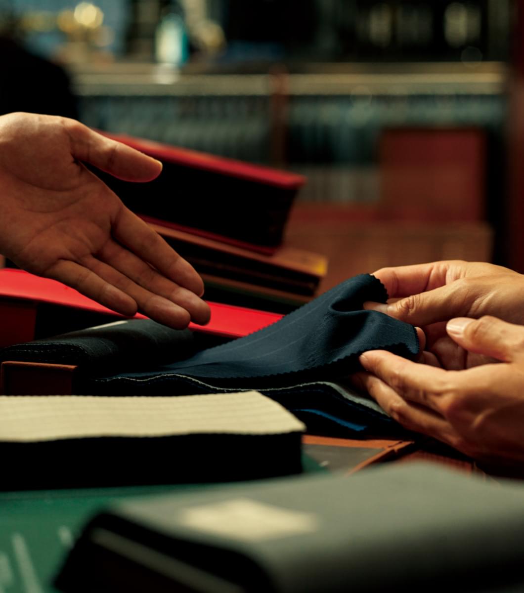 麻布テーラーは、オーダーの原点を大切にします。それは、お客さまとの対話。ただ機械的に注文を取るのでは、必ずしもお客さまが思い描くイメージを具現化できないからです。ショップを訪れたら、まずはスタッフと気楽に話してみてください。「オーダースーツは初めてなんだけど…」「今度友人の結婚式があって…」など、どんなことでも構いません。目指すのは、“想像以上”の完成度。あなたにとって最良の相棒となるスタッフがお待ちしています。