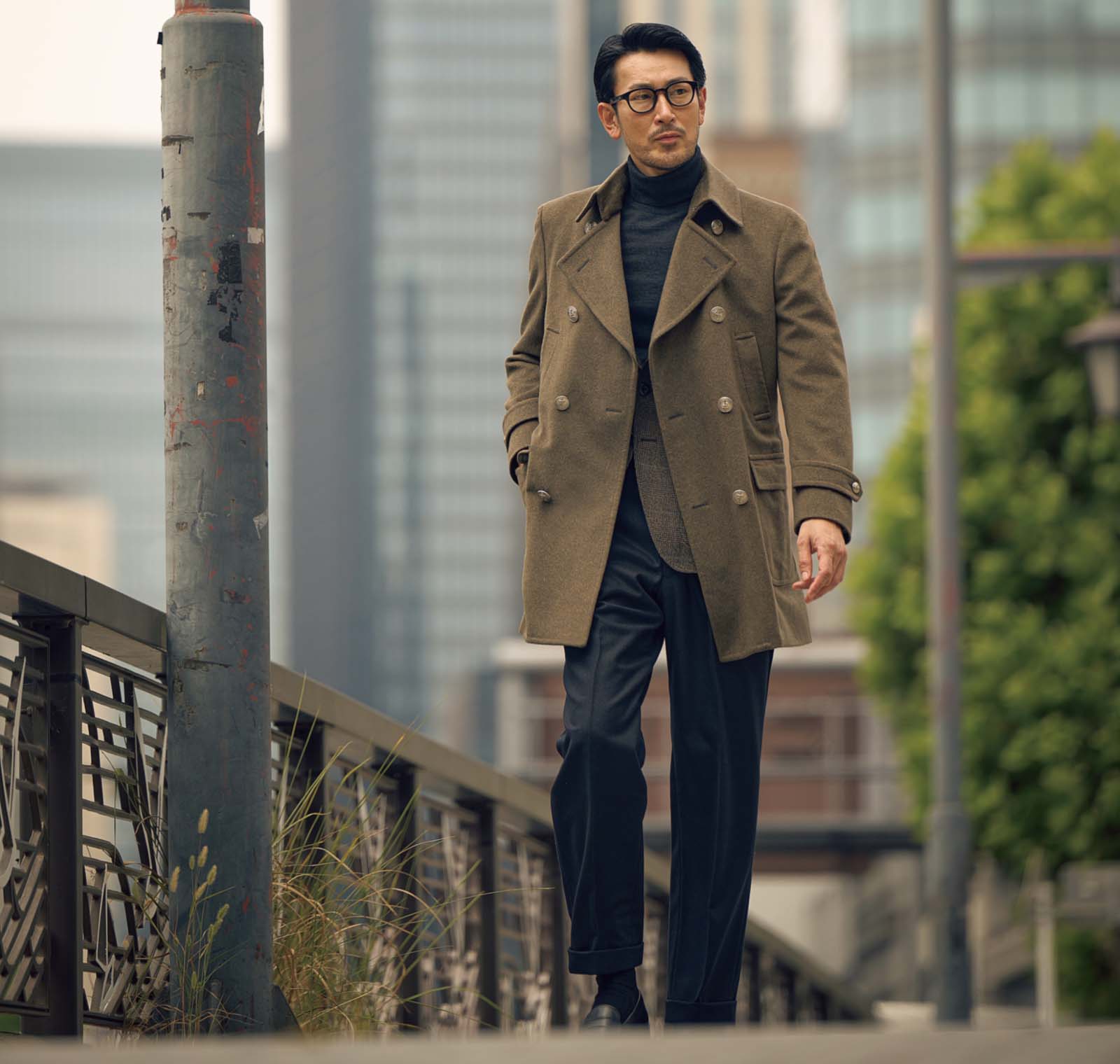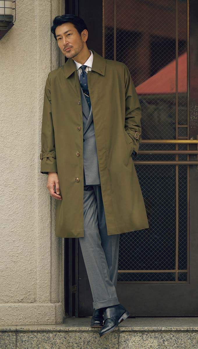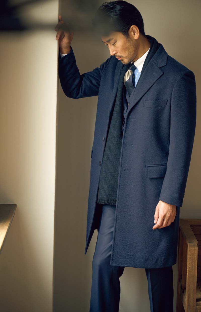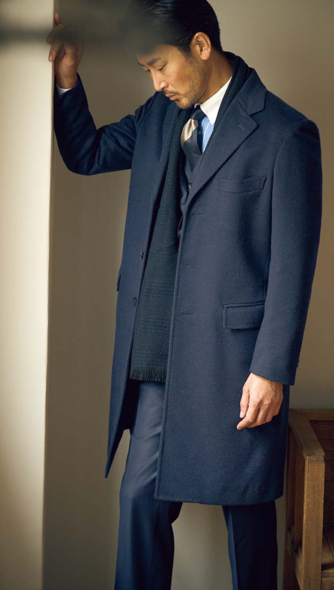 全体に占める面積の割合が最も大きく、かつフロントを留めるか、開けるかといった着方によっても印象が変わるとあって、コートの着こなしがスタイルの成否を決めるといっても過言ではありません。そしてこと端正さが求められるドレスコートで重要となるのが、フィッティング。これがキマっていると、佇まいからして格好よく映るもの。理想を突き詰めれば、コートも自ずとオーダーメイドに行き着くわけです。