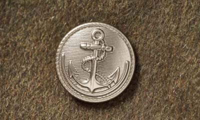ピーコートといえば錨ボタンも、メタルのそれを選べば一段上品なテイストに。ミリタリーオリーブの生地にも絶妙にマッチ。
