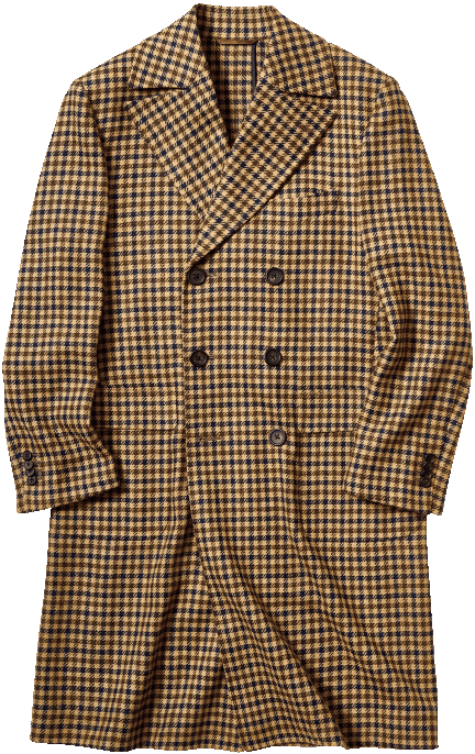 英国のカントリー服地の名門、ダブルビル社のシェットランドウール生地を用い、アンライニングで仕立てた変則スタイル。これにより、ロングコートの品格とフランクさを併せもつ一着に。17万9850円〈オーダー価格〉。