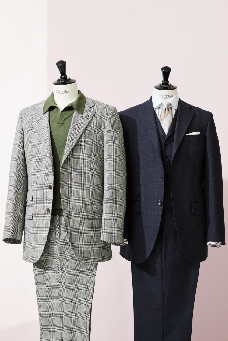 イタリアの「ドラゴ」とイギリスの「マーリン&エヴァンス」には、風が突き抜けるような優れた通気性の生地を別注。ともにハリコシに富むことで、立体的なシルエットをお楽しみいただけます。 また蒸し暑い時期に堅苦しい服は着用しづらいとの考えから、抜群の伸縮性を実現する別注生地を、イタリアの「トラバルド・トーニャ」と「ドンディ」にオーダー。今の時流にマッチするコンフォートな着心地ながら、こちらもきちんと仕立て映えします。