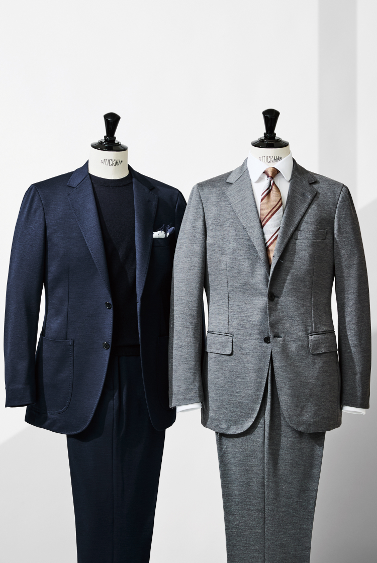 ニット素材の柔らかさと伸縮性を活かしながら、テーラードの美しいフォルムを保つ麻布テーラーのドレスジャージーコレクション。カットソーやスニーカーとも相性が良く、オフィスカジュアルや休日のお出かけに最適なことから毎シーズンご好評をいただいております。