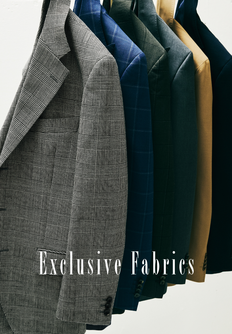 麻布テーラーは、世界の名だたる生地メーカーへの別注ファブリック、あるいは当ブランドでしか扱いのないエクスクルーシブなファブリックなどを毎シーズン豊富に展開しています。